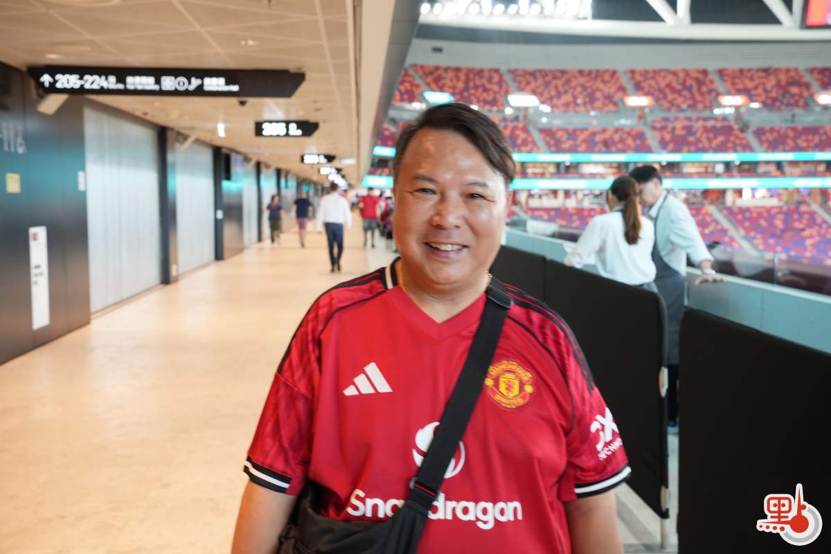 自小支持英超的黃先生攜同家人,購買座位靠前的$999門票,形容「對比特地飛往英國觀看球賽,此次賽事門票的定價合理,有吸引力」。他透露自己首次在啟德主場館支持愛隊曼聯,認為設施世界一流,較香港大球場舒服和乾淨,「最重要是有冷氣」。