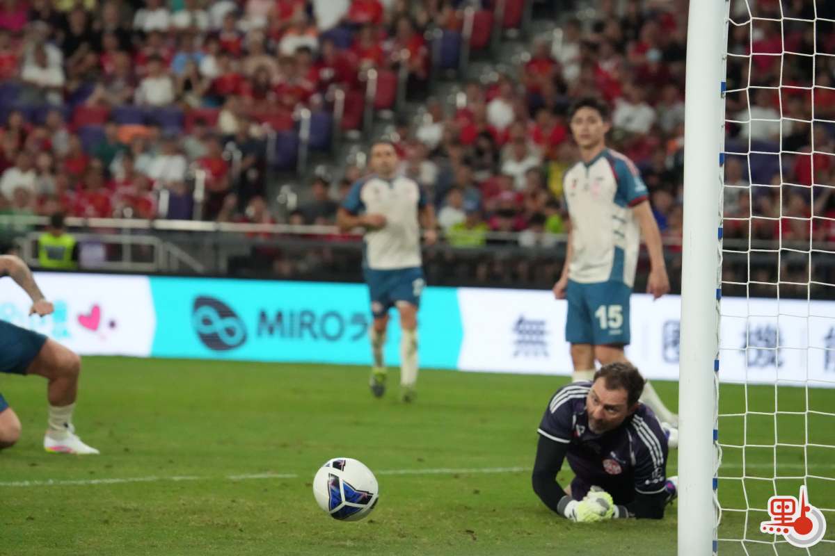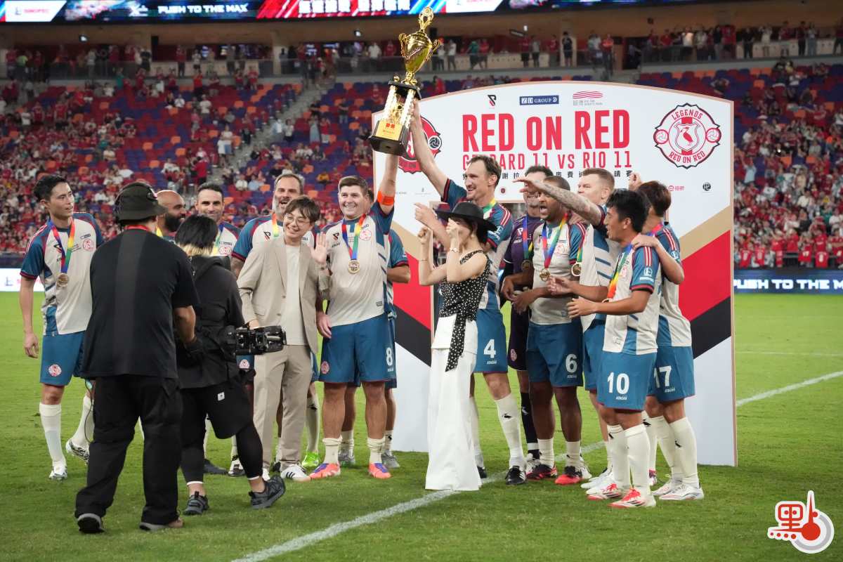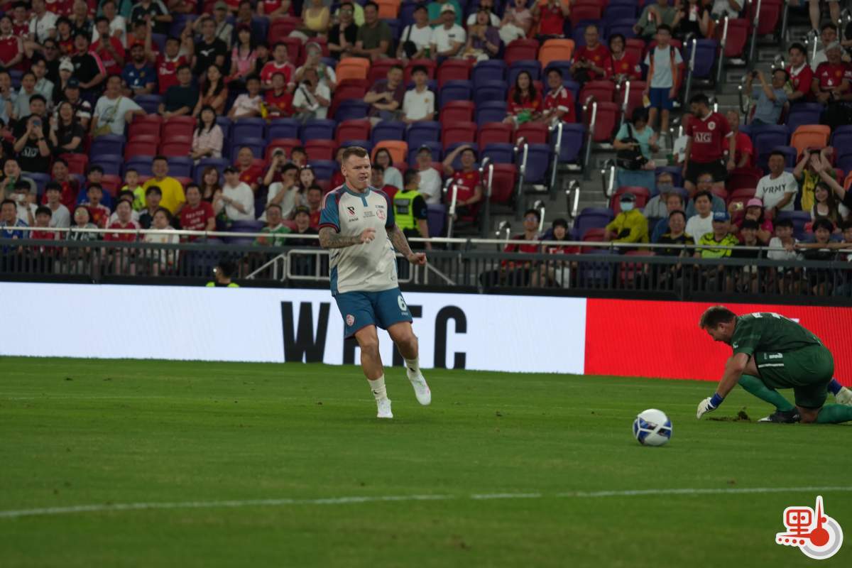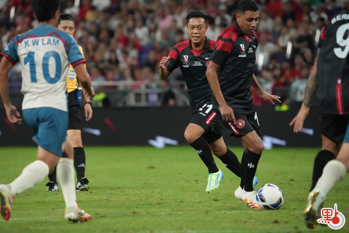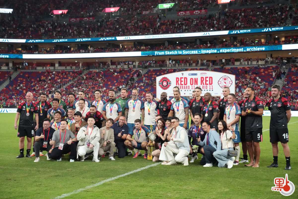 【點新聞報道】「雙紅會:謝拉特、里奧費迪南邀請賽」 今日(18日)在啟德主場館上演。賽事邀請到現任港隊主教練韋斯活披甲上陣,聯同包括陳肇麒及陳偉豪在內的6位港隊傳奇球員作後備,變相將「雙紅會」升級為「三紅會」。經過90分鐘鏖戰,謝拉特隊最終4:2戰勝里奧費迪南隊。此場比賽共有27081人入場觀戰。