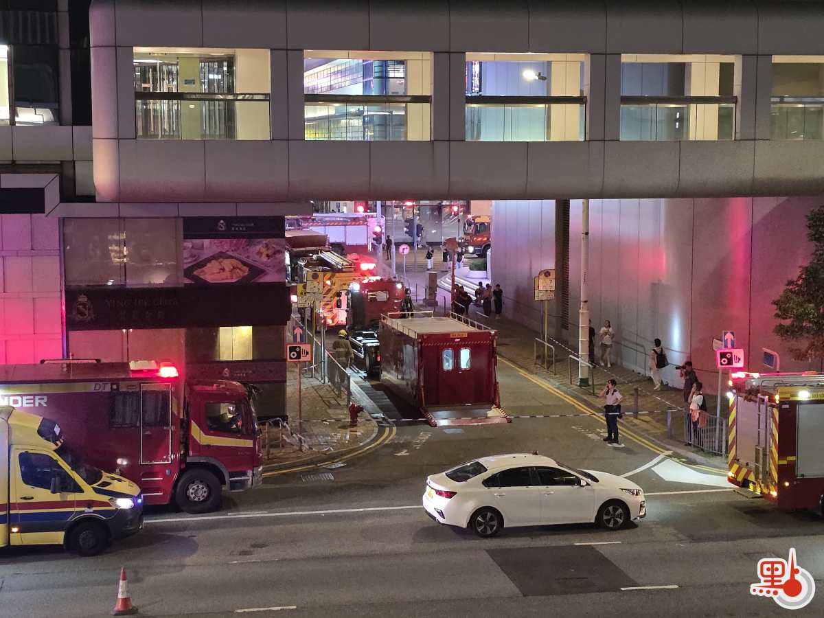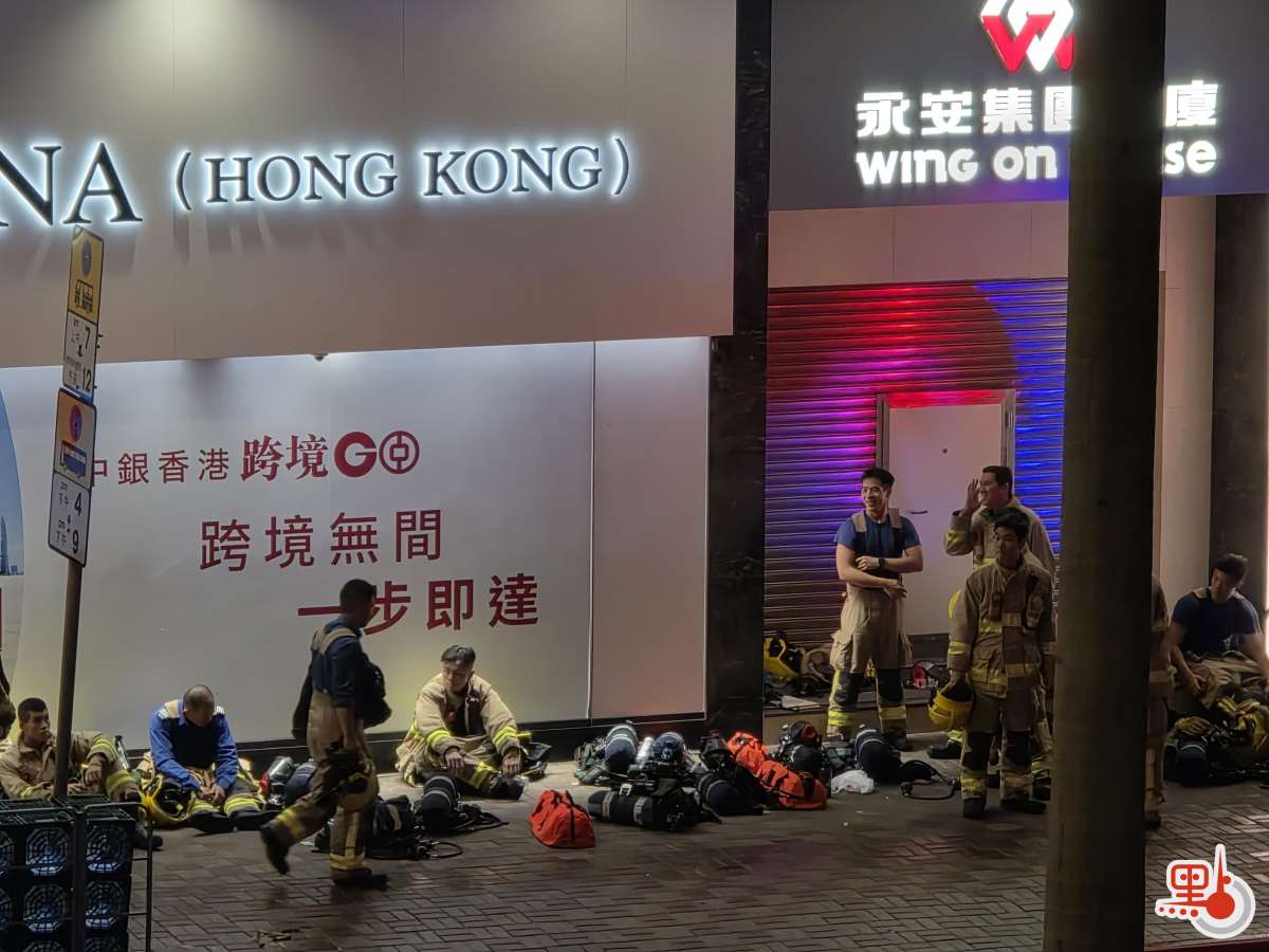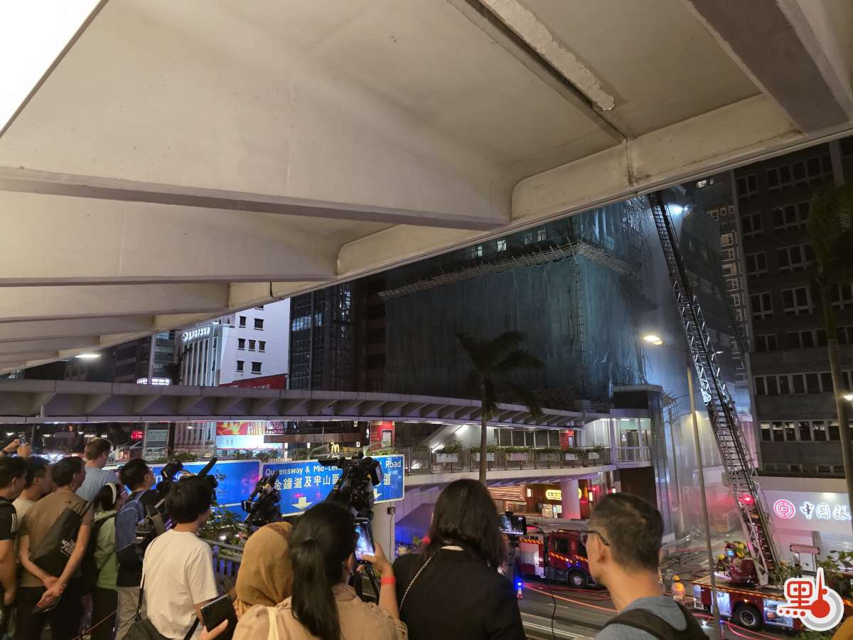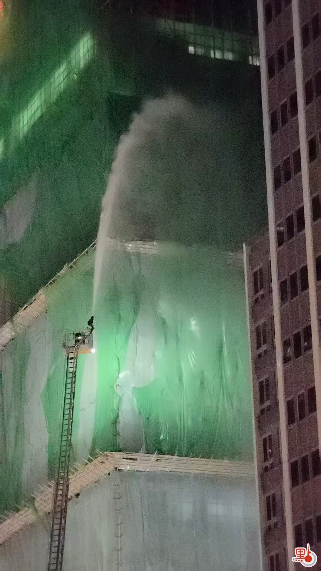 點新聞記者在現場看到,晚上9時25分,明火已經熄滅,消防員仍在對涉事大廈大量射水,進行降溫工作,防止死灰復燃,現場還有多名消防員待命。