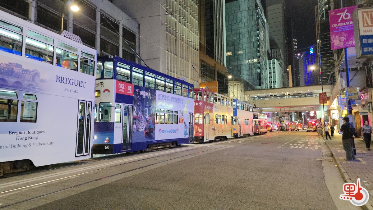點新聞記者在現場所見,德輔道中仍封路,多部電車堵塞,排成長龍,仍無法返回車廠,電車司機只能原地滯留等待。