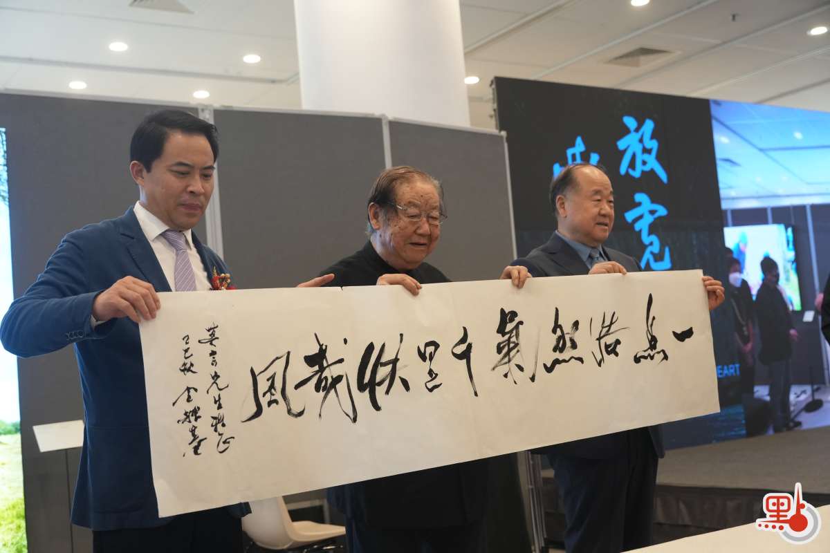 【點新聞報道】諾貝爾文學獎得主莫言與書法家王振聯合呈現「放寬心·喫茶去」攝影書法展,今日(18日)在香港中央圖書館舉行開幕禮。此次展覽以「文墨共生」為核心主題,將兩人同名隨筆集《放寬心·喫茶去》中「以腳步丈量山河,以筆墨書寫心境」通過近80件書法和攝影作品,展現給觀眾一場兼具文學深度與藝術美感的藝術展,展期至11月3日。