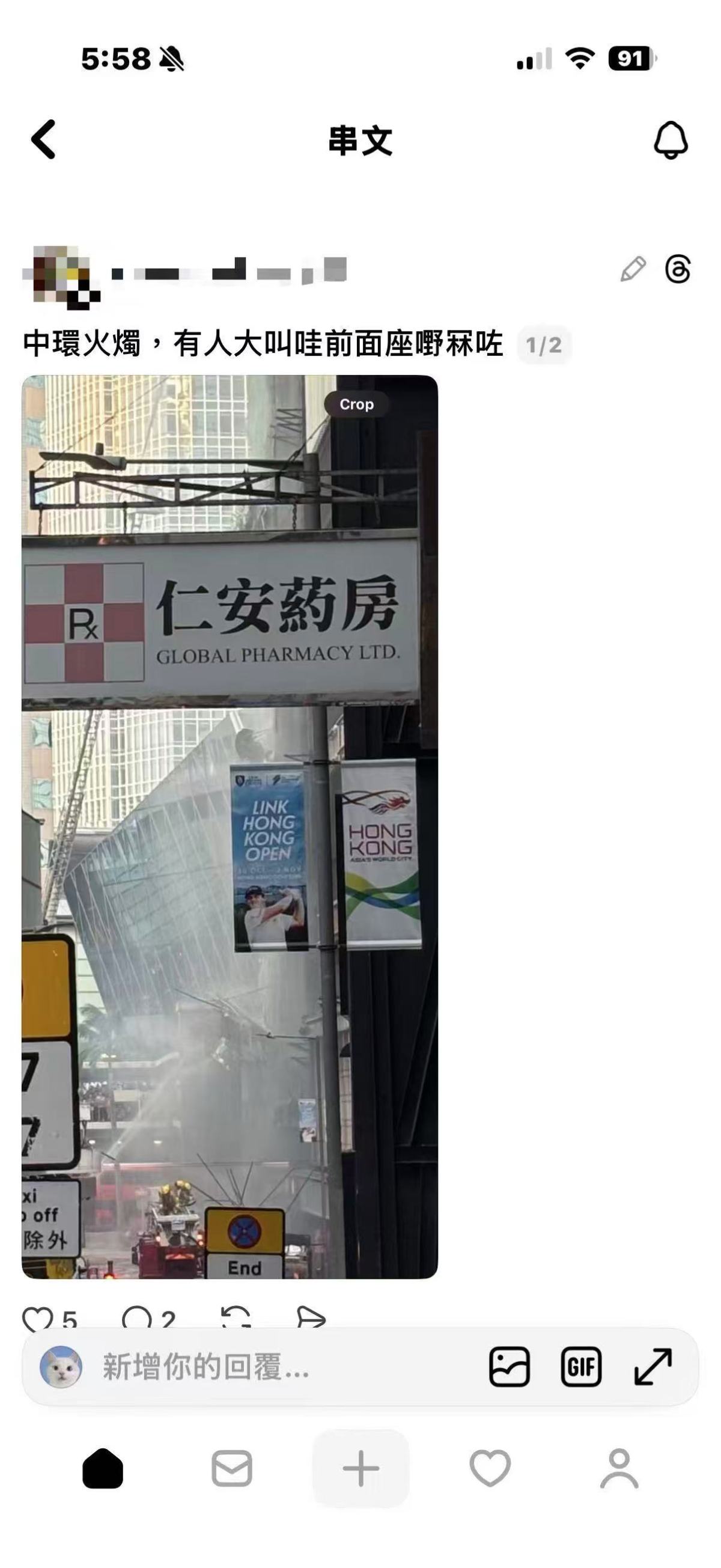 關於在下午火勢蔓延期間,有網友於社交媒體發布不實帖文,謊稱有建築倒塌的情況,警察已於現場確認是假消息。點新聞記者詢問警方,災難中編造和傳播這種不實消息會否受到處罰?