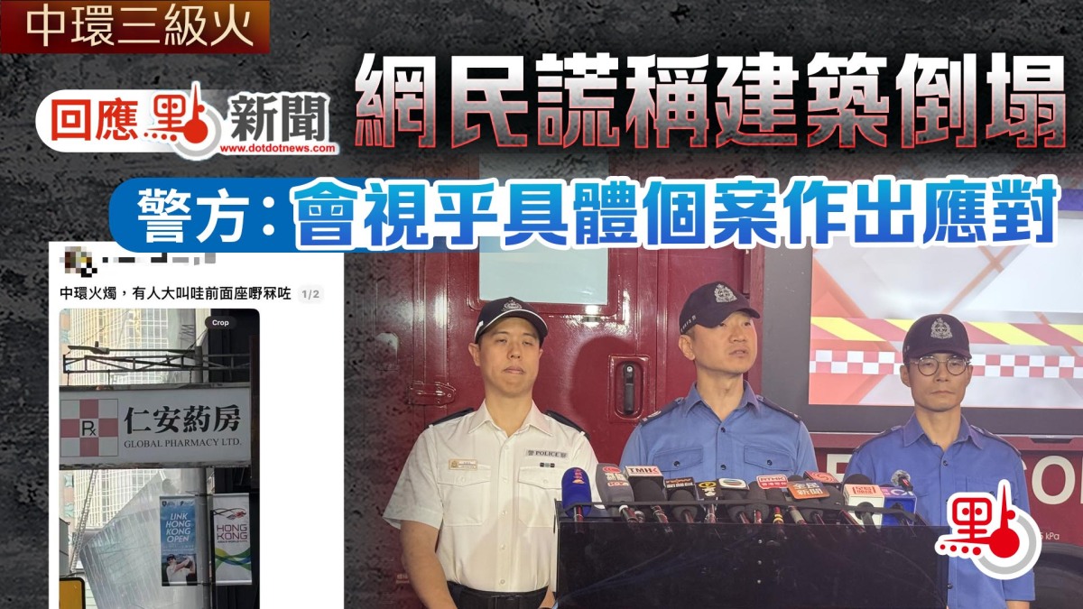 警務處中區警區總督察(行動一)林康恒回應點新聞表示,警方暫時未收到有關上述消息的資料,但警隊公共關係部都會適時同傳媒合作,在各種事件中將最新真實情況透過傳媒告知公眾。如果有人在災難中編造和傳播類似不實消息,警方會視乎具體個案的性質作出應對。他指,香港市民有言論自由,但警方提醒大家,市民在社交媒體上的言論都是大家了解社會情況的重要渠道,因此要發布真實的資訊才有利於社會。