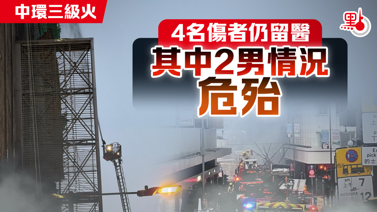 【點新聞報道】中環干諾道中34至47號華懋大廈昨日(18日)下午發生三級火警,造成4人受傷,包括3男1女,年齡介乎23歲至65歲。政府新聞處今日(19日)凌晨回覆傳媒查詢指,4名傷者中,姓倪(23歲)及姓林(55歲)男子情況危殆;而姓鍾(65歲)男子及姓楊(35歲)女子,則情況穩定。