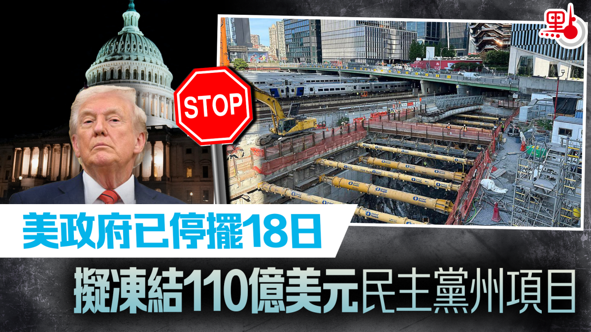 【點新聞報道】綜合外媒報道,美政府停擺進入第18天,美政府將凍結用於民主黨執政州基礎建設項目,共計110億美元,最終這些項目將可能被取消。