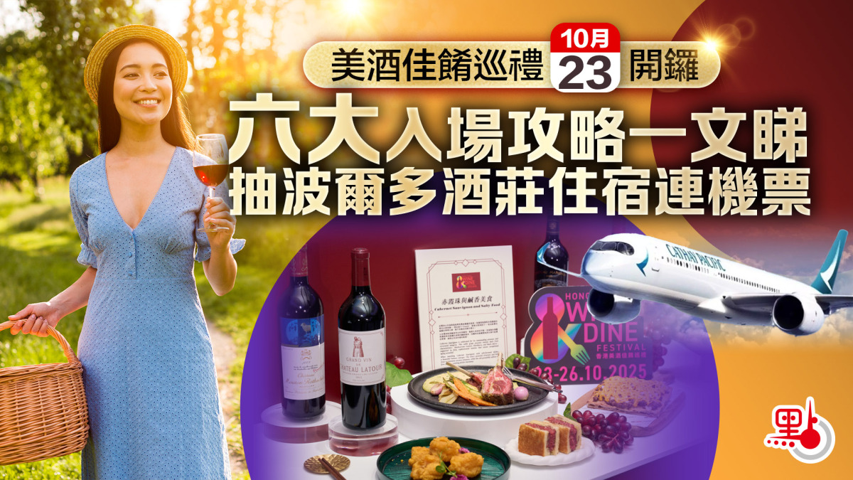 【點新聞報道】由旅發局舉辦的「香港美酒佳餚巡禮」將於周四(23日)開鑼,一連4日於中環海濱舉行,開放時間更首次延長至午夜12時。今年美酒佳餚巡禮推出全新味覺配對體驗,融合5大葡萄品種與5種滋味,讓入場人士自由搭配多款美食與佳釀,探索創意組合。現場還推出多買多送的幸運大抽獎,有機會贏取波爾多酒莊之旅住宿連來回機票,共4個名額,每份獎品價值5萬元。想盡情暢飲及玩得盡興,即睇以下入場攻略!