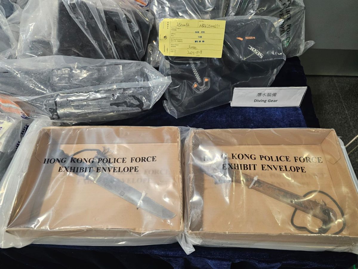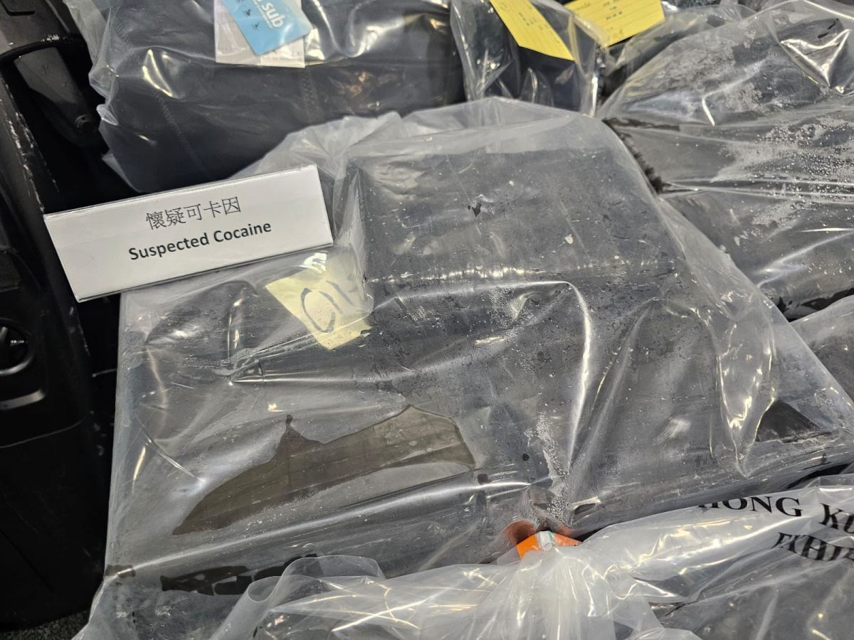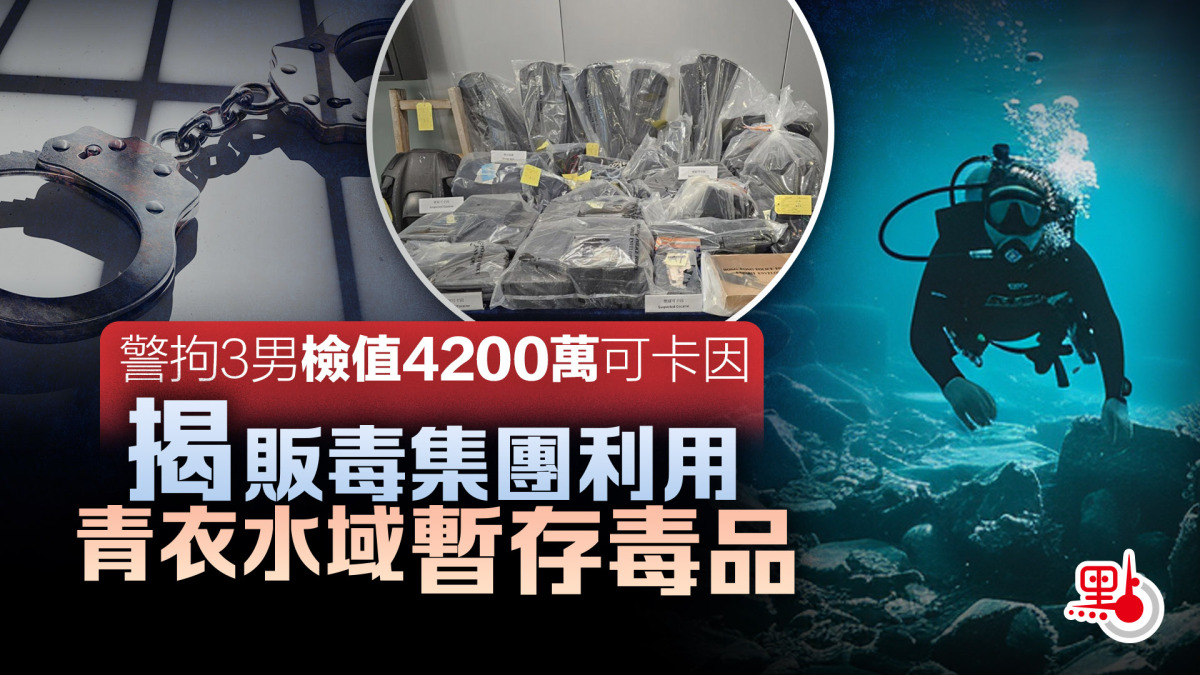 警方今日(19日)簡報案情指,經情報分析及調查,相信有販毒集團將非法運入境的毒品暫存於青衣近岸水域,隨後安排潛水員將毒品打撈上岸,供應本地毒品市場。毒品調查科於昨日展開針對性行動,並於凌晨時分發現有人在青尚路一停車場靠近岸邊的位置,將三大袋物品交予岸上接應的團伙成員,隨後將物品搬上一輛私家車,準備離開。