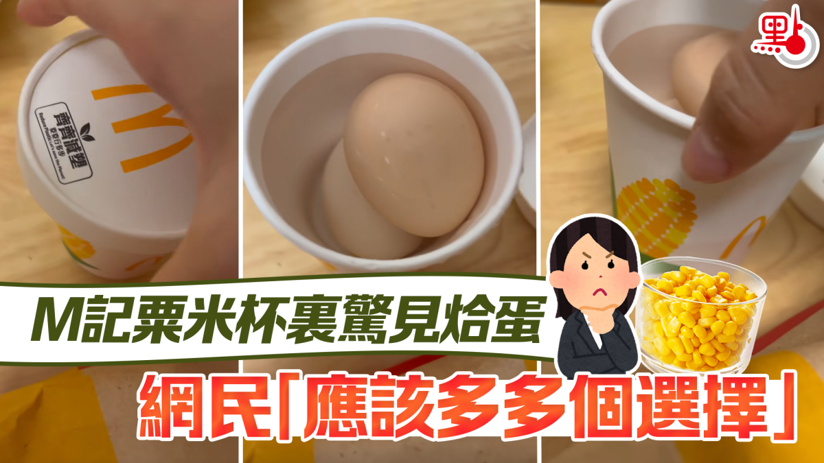 【點新聞報道】日前有一網民於社交平台分享一段影片,並配文提問「M記粟米杯可以轉兩隻烚蛋架(㗎)咩?我啲粟米呢?」。從影片中可見,樓主打開粟米杯後,原本應該裝着粟米的麥當勞粟米杯中竟裝着兩個烚蛋。
