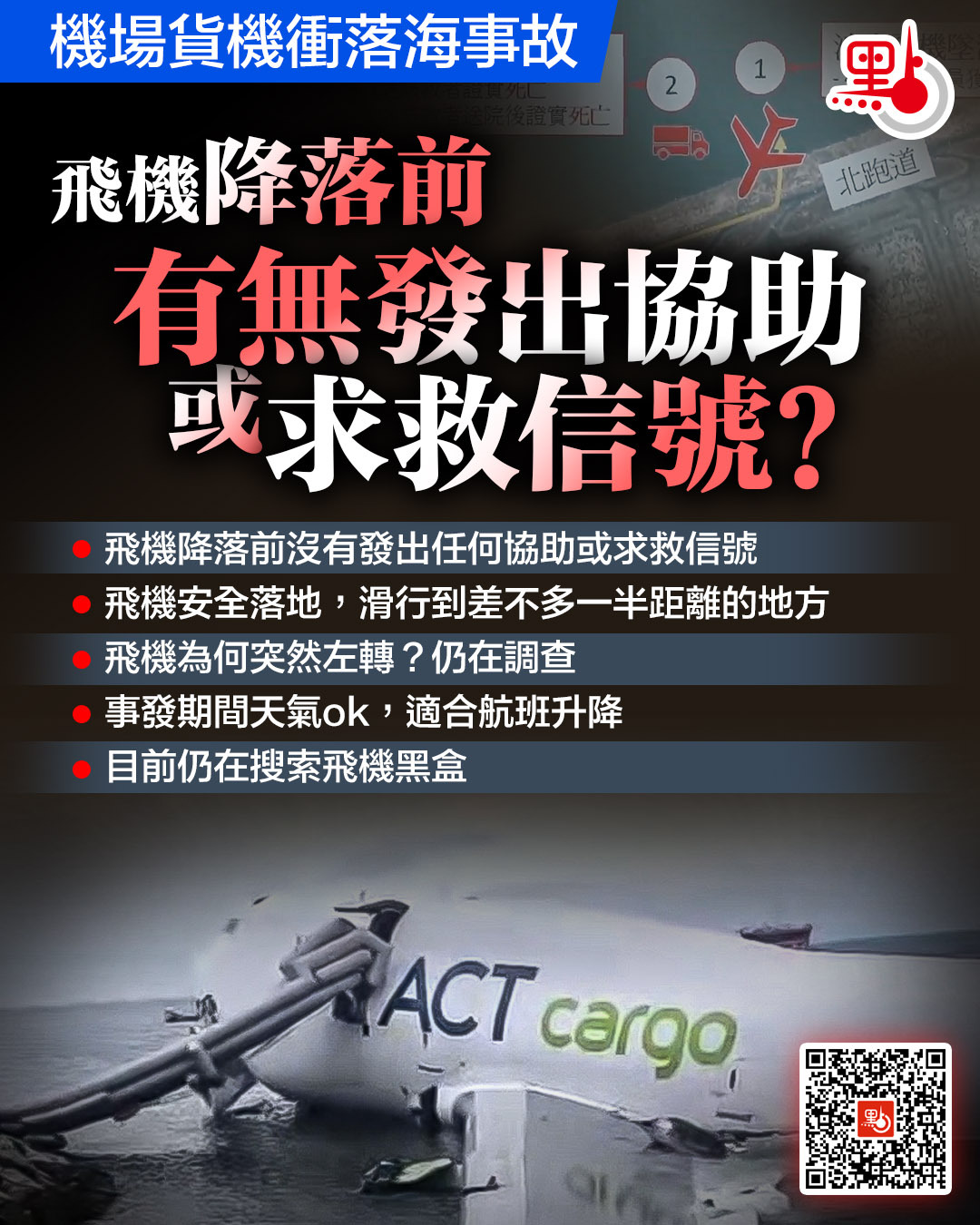 【點新聞報道】香港國際機場今日(20日)凌晨發生奪命航空事故,一架杜拜抵港貨機衝出跑道,兩名地勤人員連人帶車被貨機撞落海,最終不治。點新聞整理最新消息,幫助大家了解事故發生詳情。