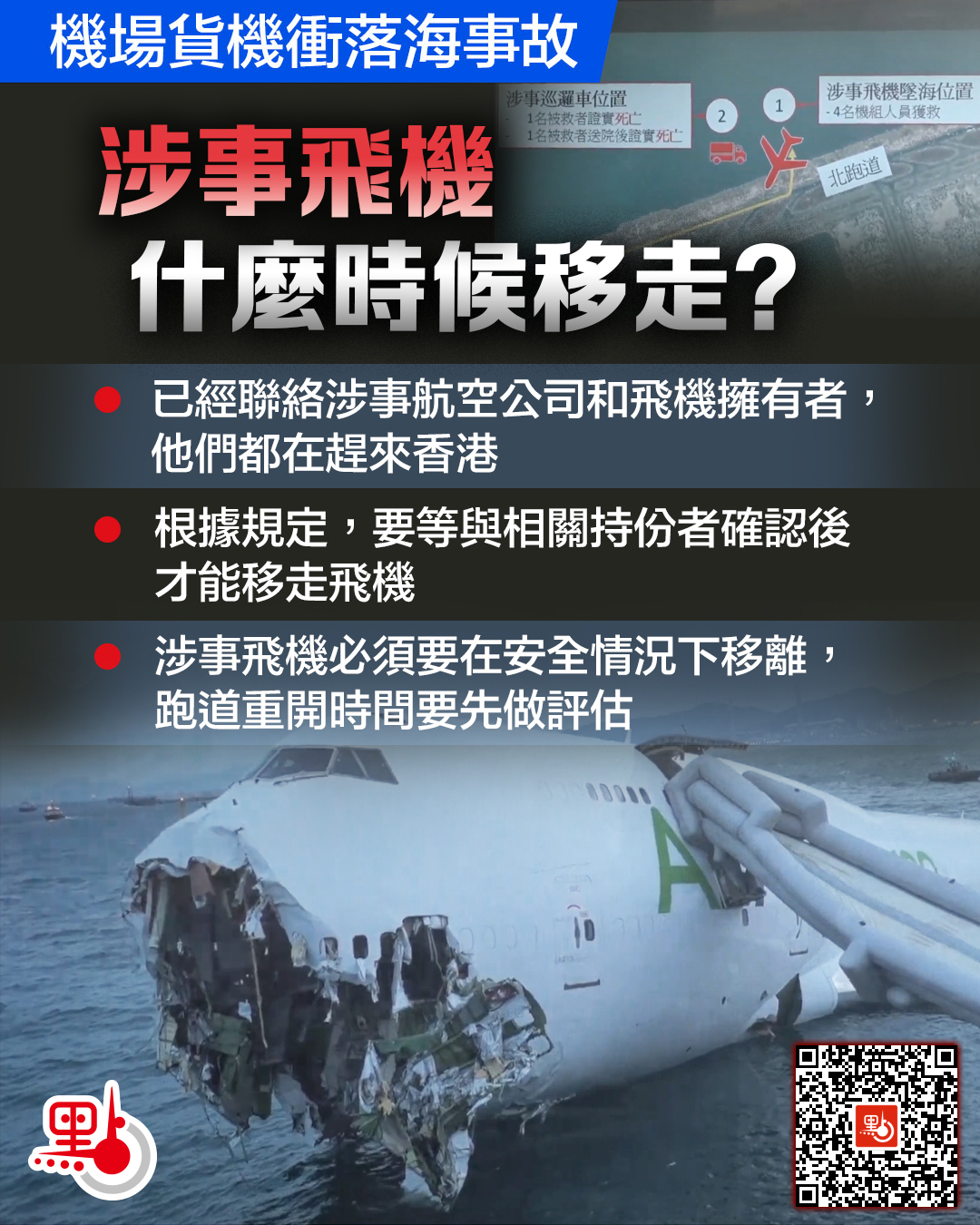 姚兆聰表示,涉事飛機必須要在安全情況下移離,飛機擁有人與涉及的航空公司負責人正趕來香港,抵達後會與他們商量如何盡快打撈移走飛機。
