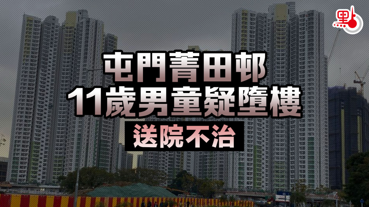 【點新聞報道】屯門菁田邨有人墮樓。今日下午(20日)5時許,一名年約11歲男童,懷疑由菁喜樓高處墮下。
