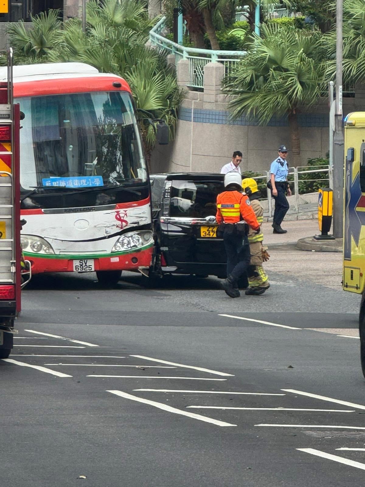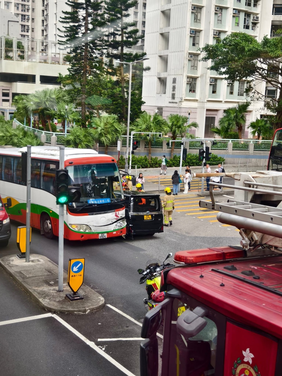 【點新聞報道】藍田發生涉及校巴的交通意外。今日(21日)上午7時34分,一輛七人車沿德田街往觀塘方向行駛,當駛至連德道交界時越過對面線,逆線猛撼一輛校巴。校巴上載有學童,事後車門未能打開,消防員到場協助學童經校巴太平門離開。