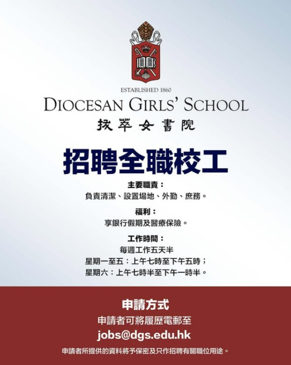 【點新聞報道】傳統名校拔萃女書院近日發布一則校工招聘啟事,意外在家長圈引發熱議。為谷子女入名校,部分家長竟萌生應聘校工的念頭,希望藉此身份為子女的入學申請增添優勢。
