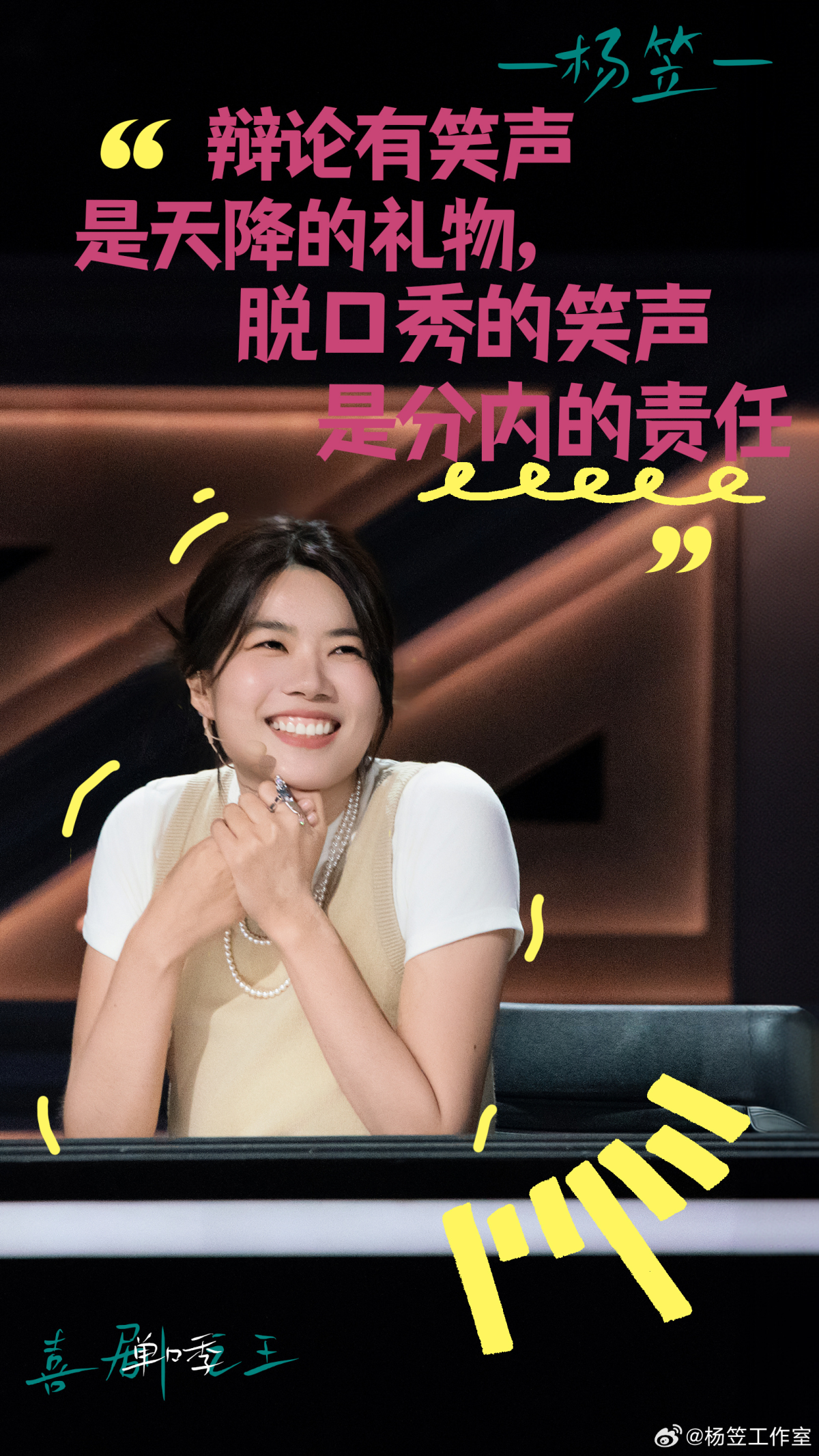 楊笠的段子以獨特的女性觀察視角見長,對兩性關係、職場生態的點評既幽默又一針見血。她在《脫口秀大會》第三季拿下第四名,第四季獲第六名,還參與了《吐槽大會》等多檔熱門節目的編劇和演出。