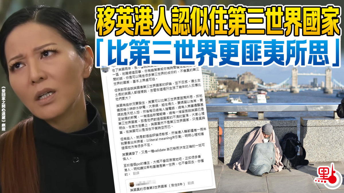 該名移英港人在社交平台threads發文分享看法,表示對那些說英國像第三世界國家的評論,並不反感,「住了英國兩年,我不會說英國是第三世界國家,畢竟看你住哪一區,地鐵壞這回事,你有錢駕車或你有時間慢活避開繁忙時間的話,你是可以隔走很多第三世界的成份的,不像真的第三世界的國家,基本上無處可逃。」