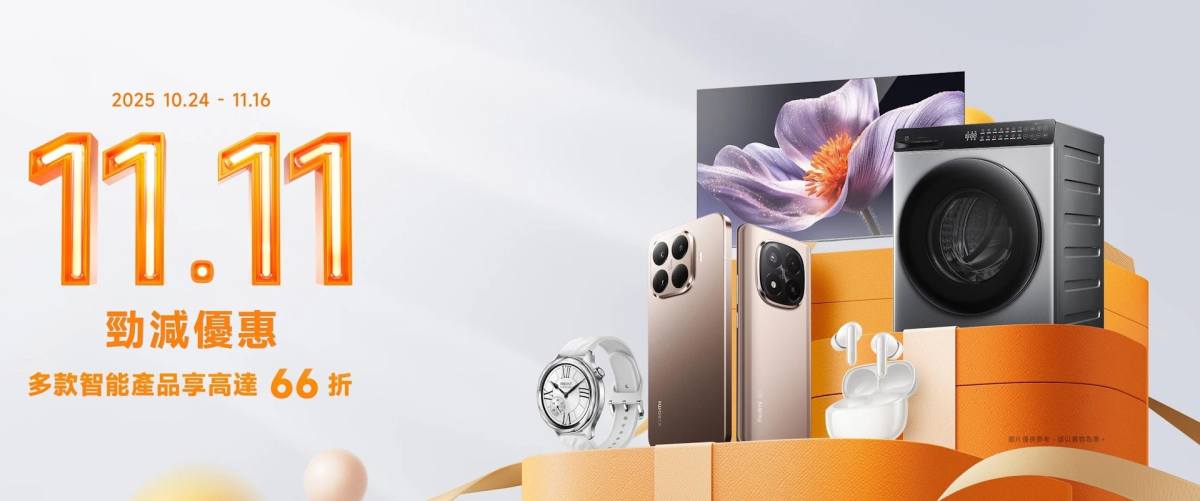 2025年小米雙十一購物節(香港站)已於10月20日開始,Xiaomi MIX Flip(12GB+512GB)由$7,699跌至$4,499,勁減$3,200;舊機換新再補貼最多HK$200,是入手細摺機的好時機。另外,Redmi Pad SE 8.7 (Wi-Fi)與Redmi A5均售價$599,全場最平。