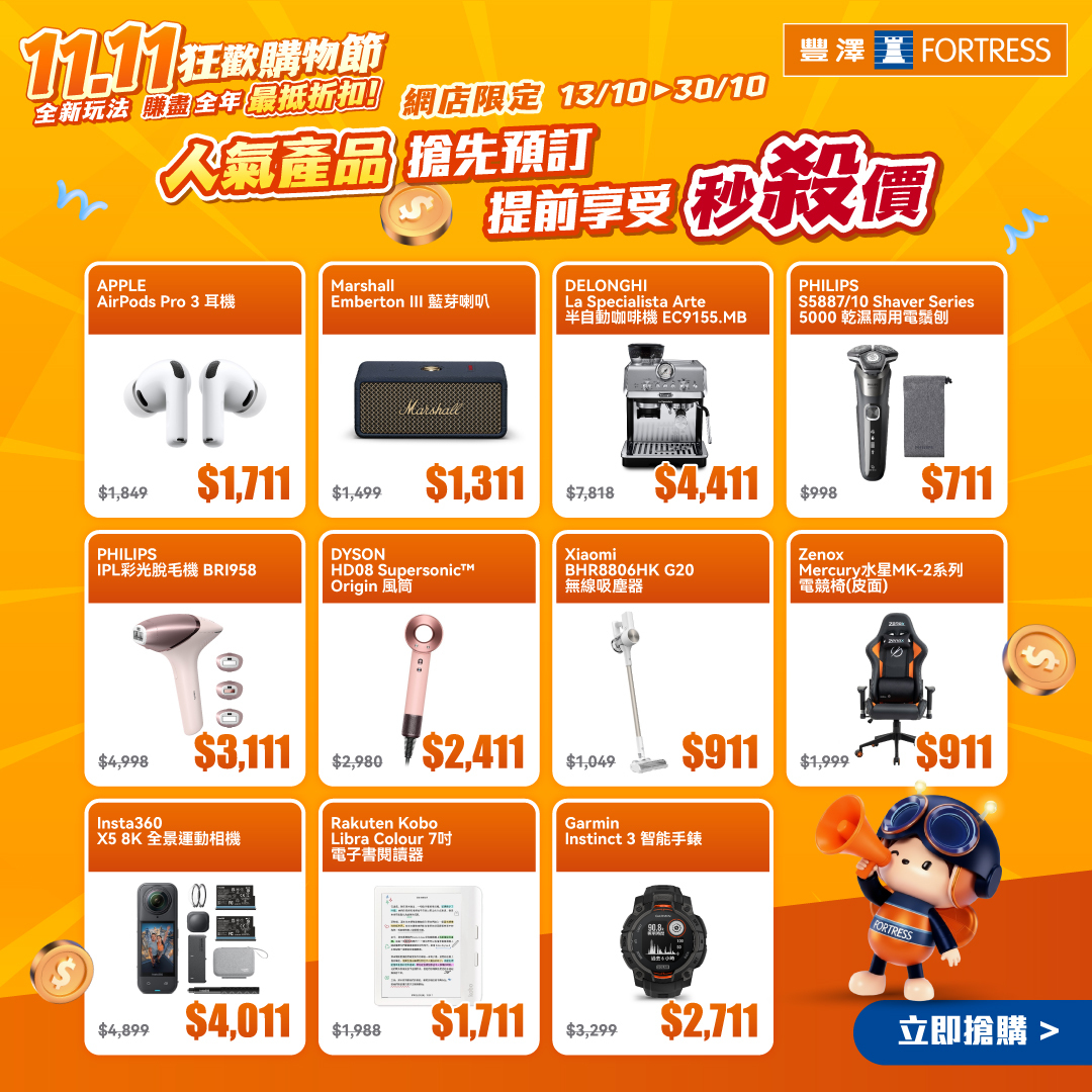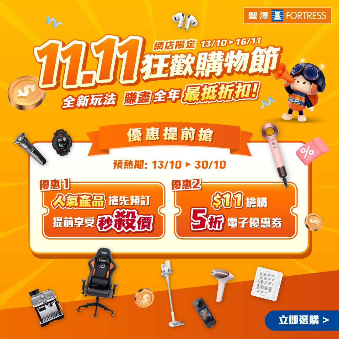 豐澤雙11狂歡購物節正式開鑼,幫大家賺盡全年最抵折扣!今年加入全新玩法,新增預熱優惠,預熱期由即日起至10月30日,齊來提前開搶!而第2輪優惠由10月31日開始,更多優惠陸續有來!