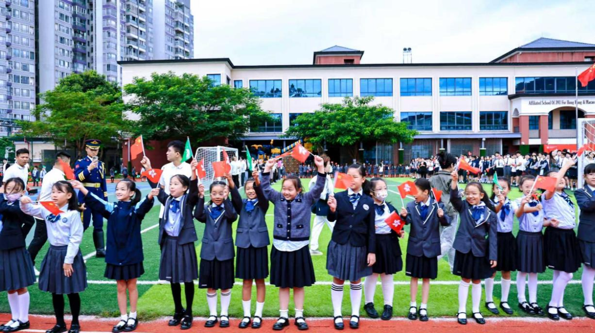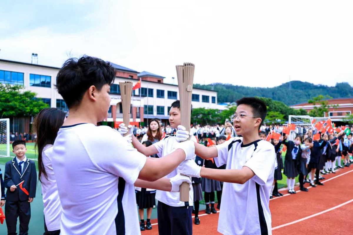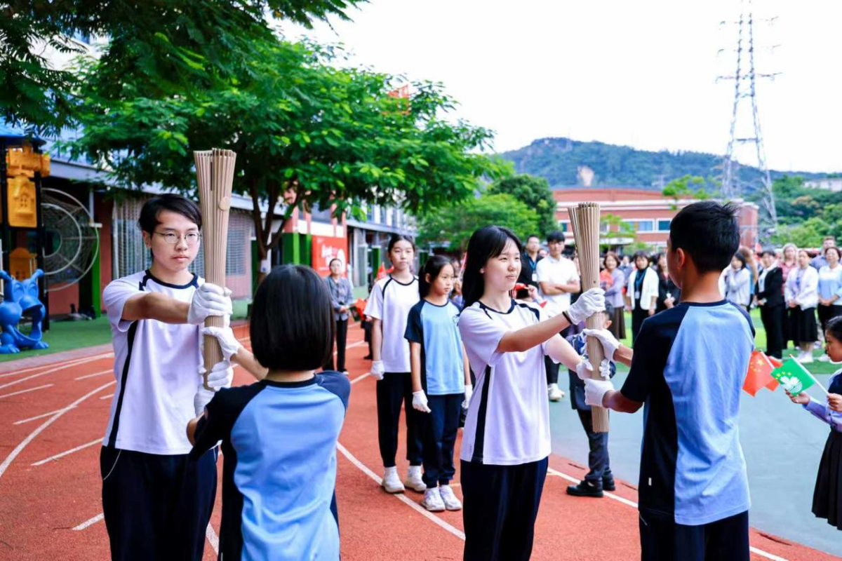 火炬傳遞儀式共設15棒,傳遞隊伍中既有活力四射的港澳籍學生,也有參與教學多年的中外教師代表。跑道旁,學子們揮舞着五星紅旗,歡呼聲此起彼伏。廣州暨大港澳子弟學校校長趙均寧在總結中強調,學生是祖國未來的「國寶」,也是每一個家庭的「寶貝」,他寄語學生在學校健康成長、全面發展,要堅定忠於祖國、信守集體主義、敬於職責。