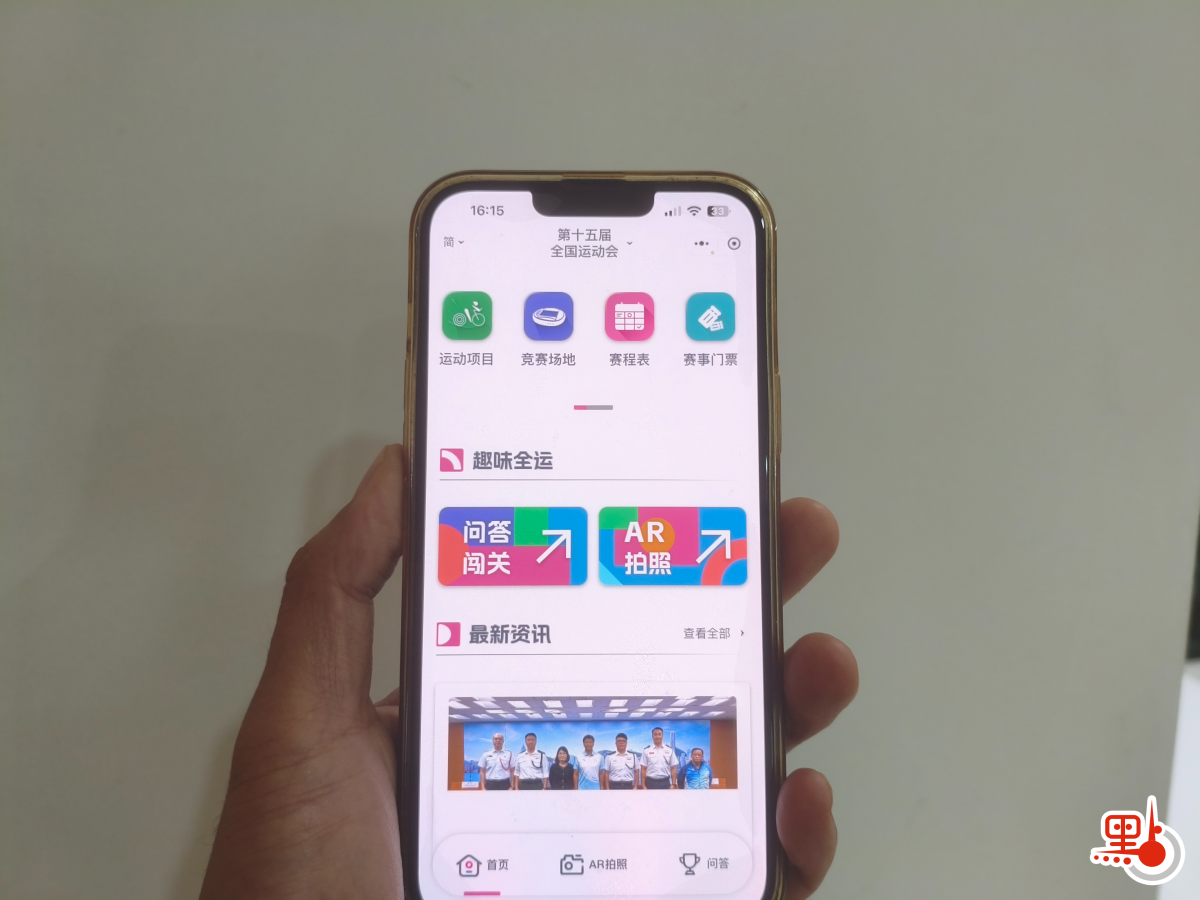 點新聞記者點擊「全運香港」發現,除了有香港賽區的賽事服務,還有一些特色體驗項目,比如在「趣味全運」環節,「問答闖關」提供全運知識問答遊戲,「AR拍照」則可通過拍攝人物照或風景照,生成有全運會標籤的個人專屬明信片,並且通過掃碼可以打印。