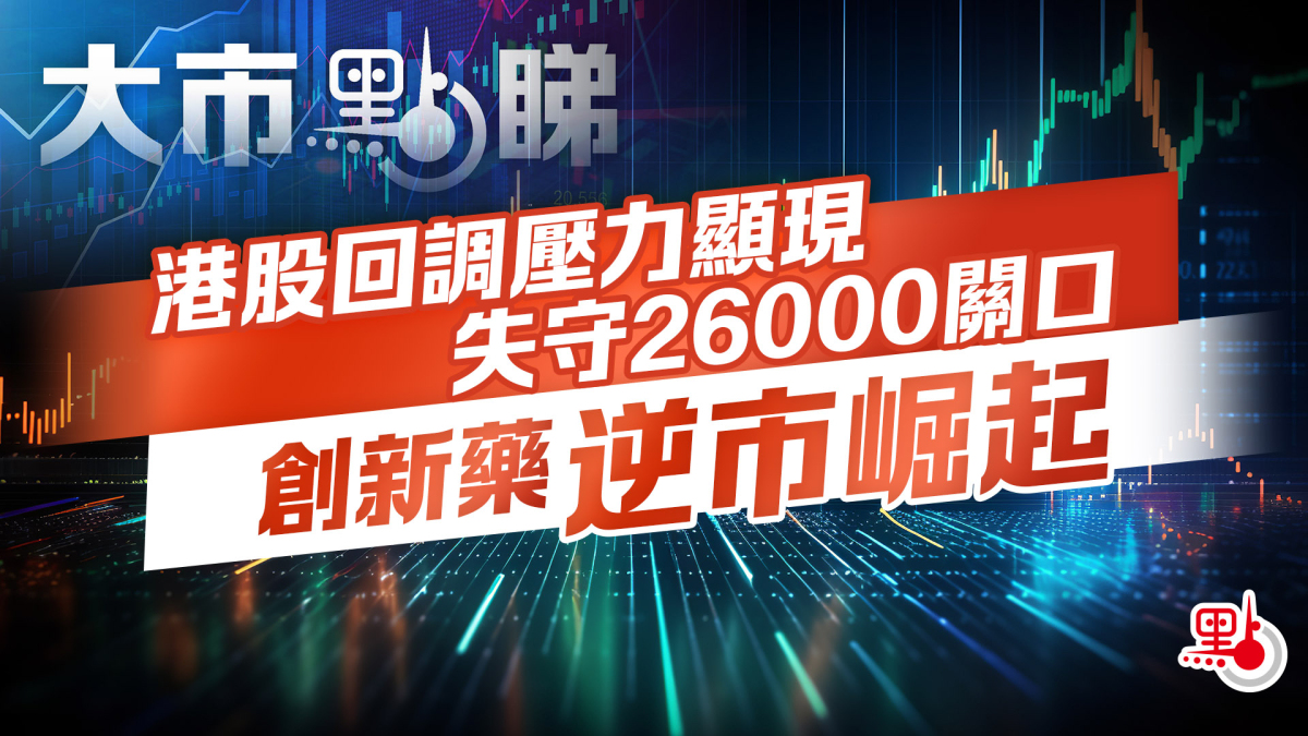 是日港股低開低走,再度失守關口,更未見有力重上,走勢明顯轉弱。同時也跌穿25900左右的50天平均線,張穎群指出,這已反映出短期反彈已經完成,估計恒指將會向25000關口推進。