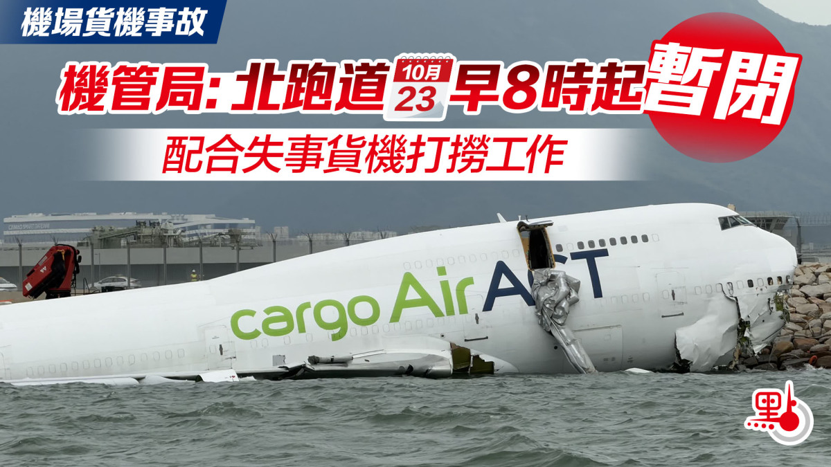機管局今日(23日)表示,機場北跑道今早8時起暫時封閉,以配合失事貨機打撈工作,料持續數日。