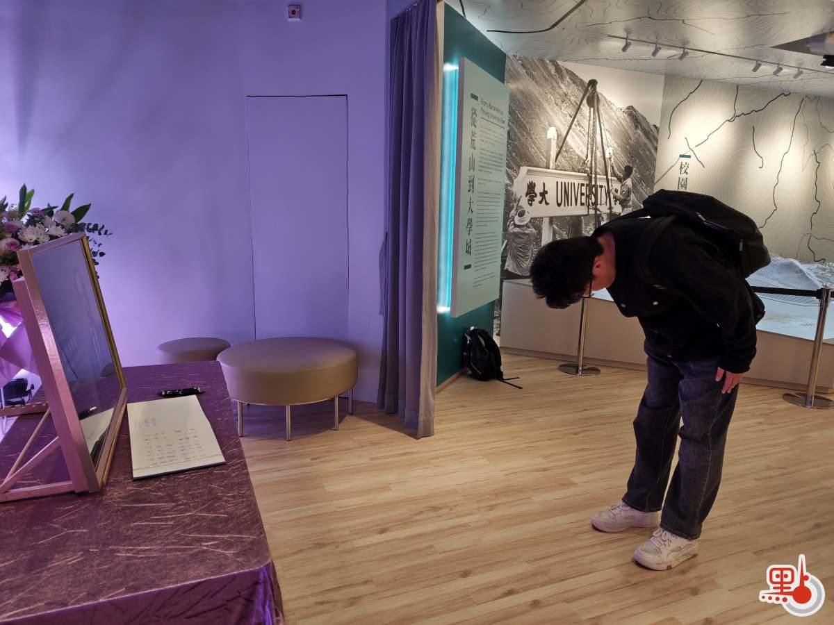 在中大物理系讀博士的王先生在弔唁室開放不久後便來到現場,他表示,楊振寧是他「心中崇拜的偶像」,在得知楊振寧去世消息的幾天裏他的「心裏一直感到很沉重」,今天特地前來弔唁。楊振寧曾多次來到中大授課,王先生稱自己入學較晚,並未有機會和他見面,對此感到非常遺憾。