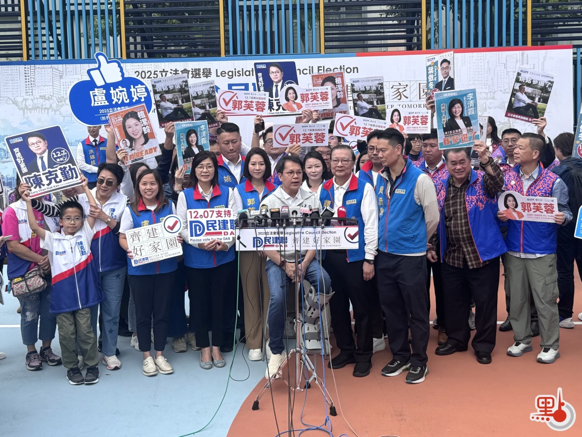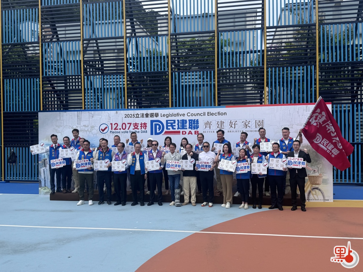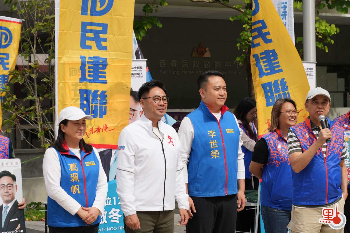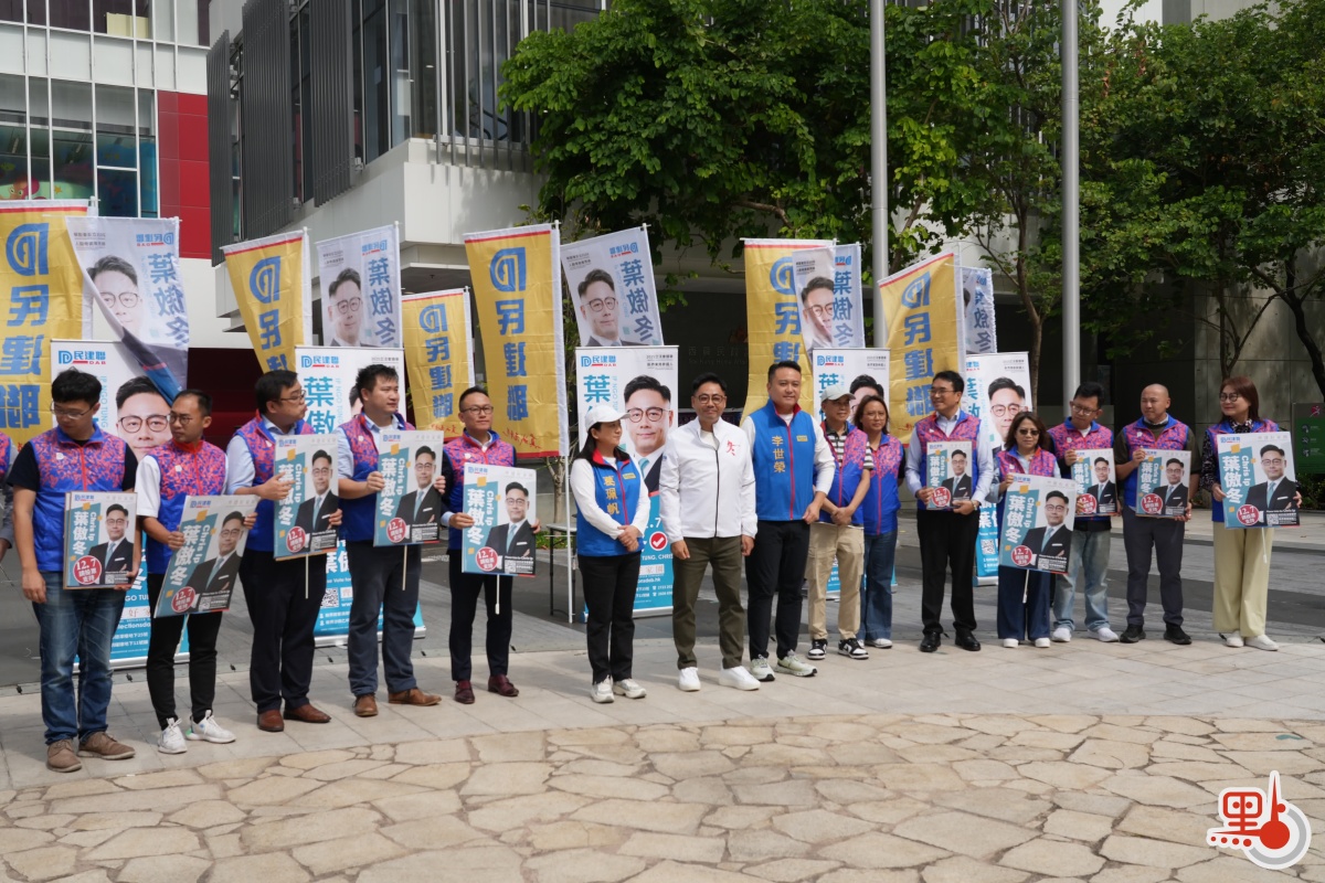 民建聯秘書長兼油尖旺區議員葉傲冬今早宣布參選地區直選的新界東南選區,早前宣布競逐連任的現任立法會議員葛珮帆及宣布棄選的現任立法會議員李世榮等人現身打氣。