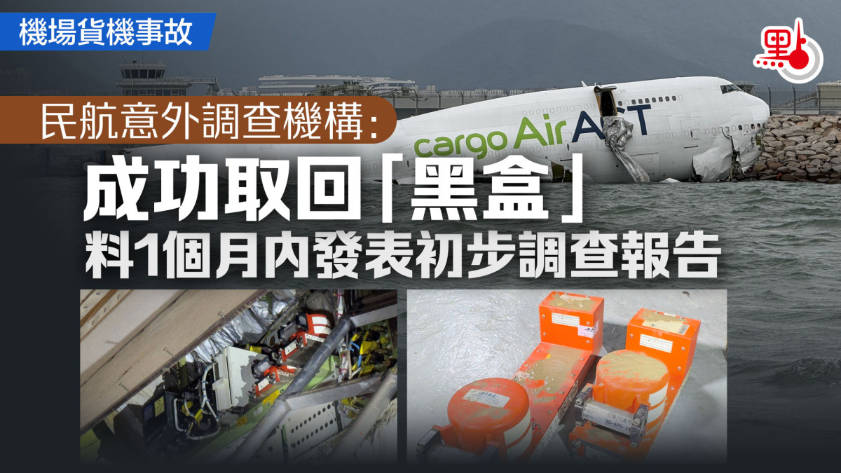經詳細的規劃和部署後,香港機場管理局委託的專業團隊正進行飛機打撈工作,以移走失事貨機,供民航意外調查機構進行進一步檢查及深入調查。為盡快收集調查所需數據,民航意外調查機構已於昨日(24日)深夜從飛機殘骸中成功取回俗稱「黑盒」的「飛行數據紀錄儀」及「駕駛艙話音紀錄儀」。兩個「黑盒」有入水情況,民航意外調查機構已隨即把相關裝置送往實驗室作初步檢查,以決定下一步工作。