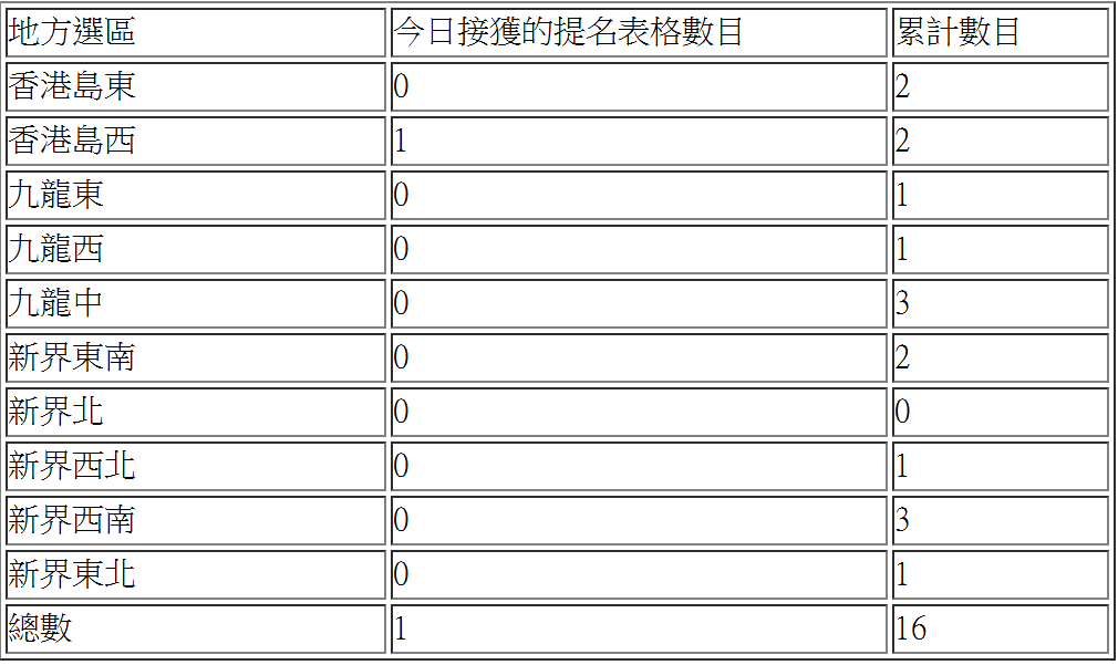 今日接獲的獲提名人士的資料稍後會上載到選舉網站。