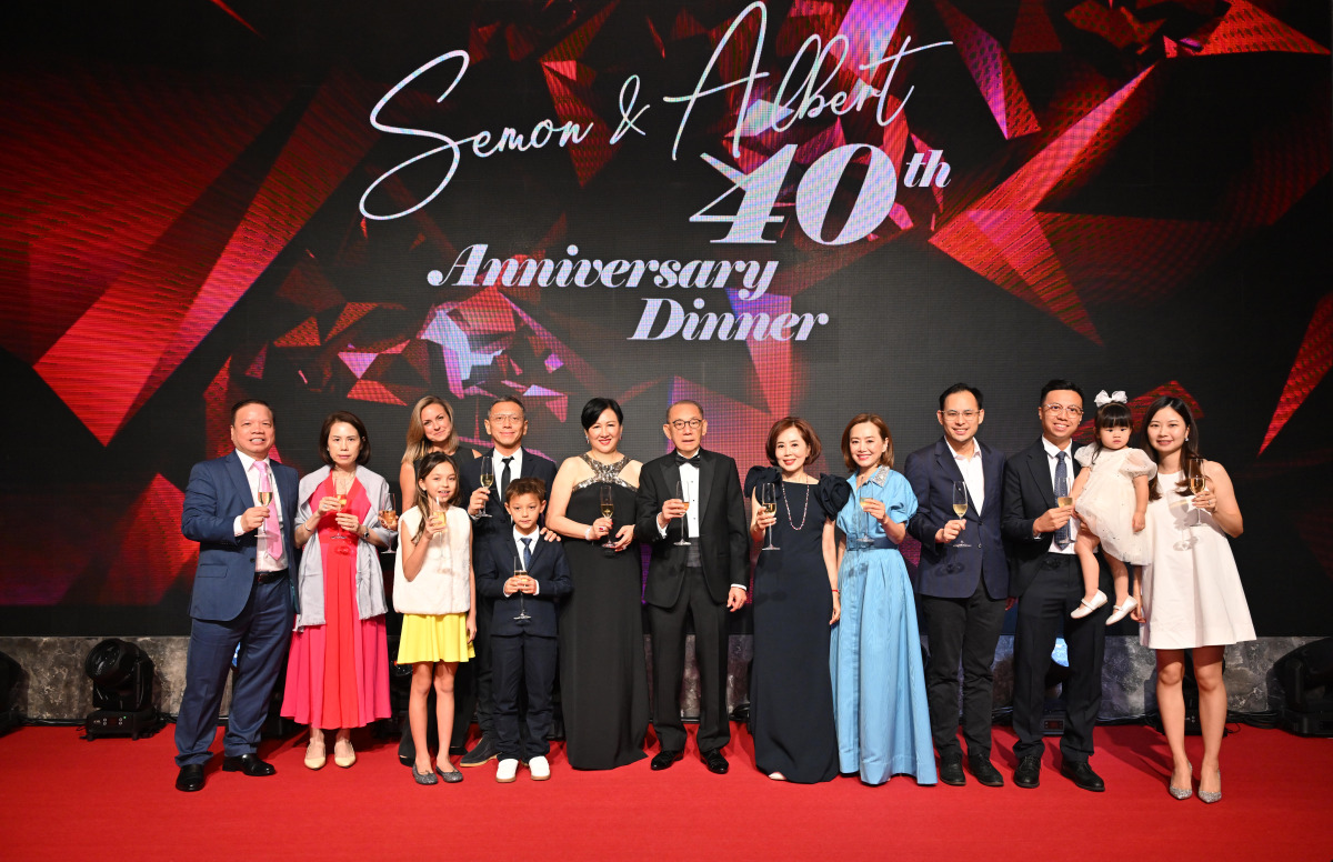 【點新聞報道】英皇集團主席楊受成伉儷昨晚(24日)於香港瑞吉酒店舉辦「40周年紅寶石婚晚宴」,筵開超過20席招待政商娛樂界名人好友以及英皇集團同事一起慶祝。