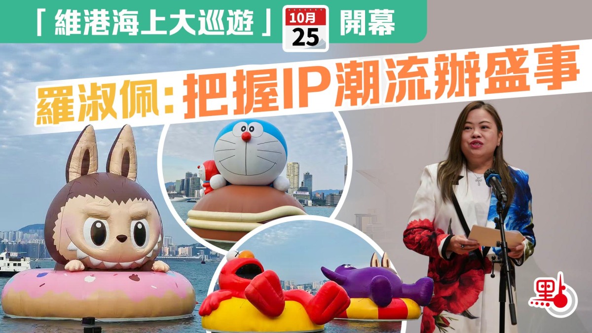 【點新聞報道】4個巨型充氣公仔包括多啦A夢、Labubu、麥當勞滑嘟嘟、芝麻街Elmo今日(25日)起在維港展出,並於下月1日舉行「海上大巡遊」。文化體育及旅遊局局長羅淑佩今日出席「維港海上大巡遊」開幕典禮並致辭表示,近年知識產權,即IP熱潮席捲全球,成為推動文化及旅遊發展的重要動力,政府把握這股潮流,與業界攜手推動文藝創意產業的蓬勃發展,為市民及訪港旅客帶來不同類型、具吸引力的文化旅遊盛事。