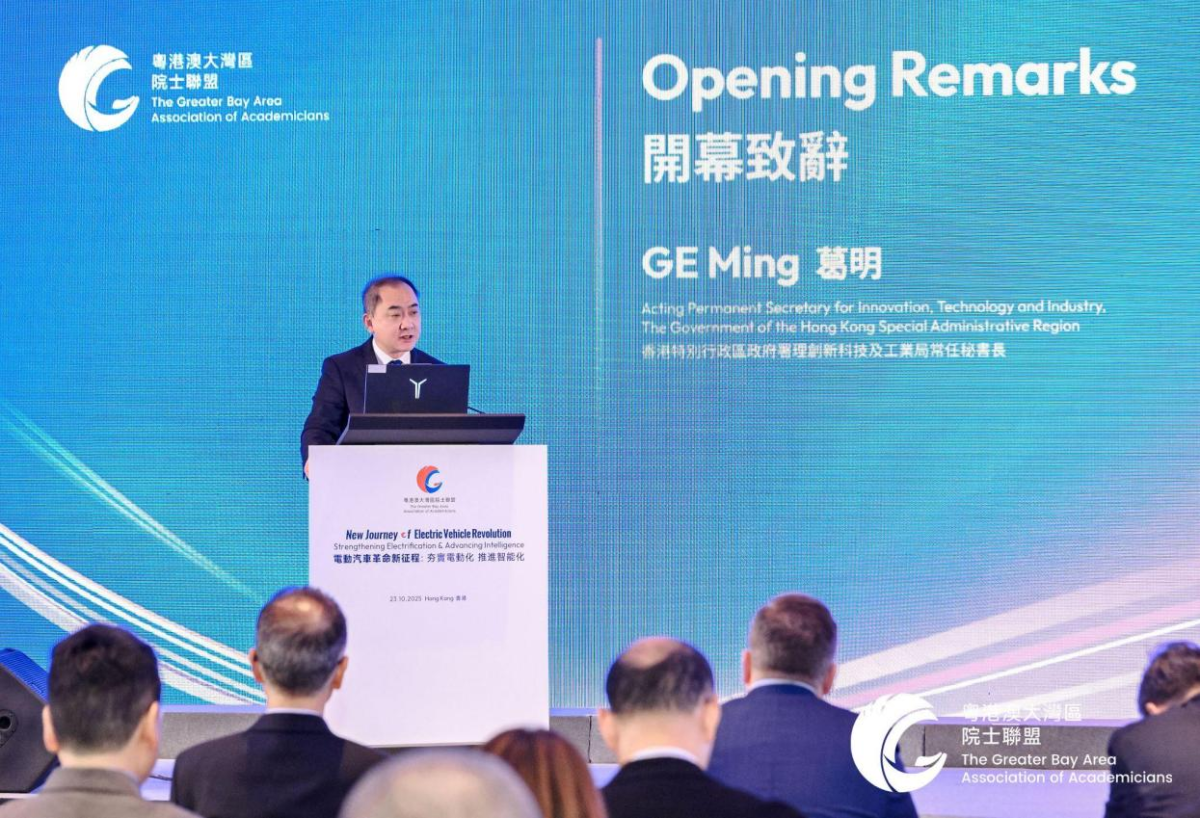 香港特區政府署理創新科技及工業局常任秘書長葛明在開幕致辭中表示,特區政府以產業為導向,將香港的科研優勢轉化為經濟發展優勢,積極推動科研成果轉化和產業化,促進科技創新和產業創新。他同時指出,電動汽車革命是一項需要全球協作的系統工程,涉及技術、政策法規、基礎設施、市場、人才等領域創新驅動,香港願成為連接各方的橋樑,促進政產學研投用的深度協同。