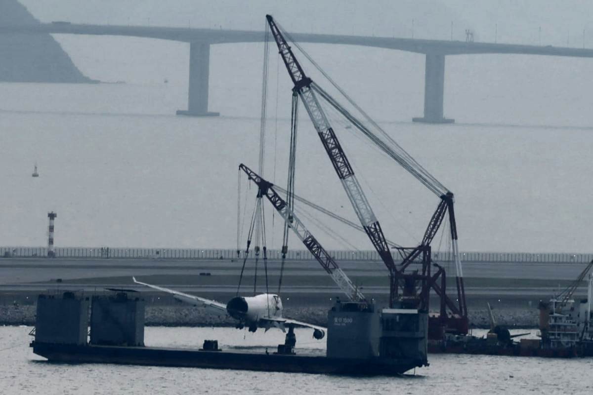 【點新聞報道】10月20日,一架由阿聯酋阿勒馬克圖姆國際機場抵港的B744貨機(航班編號UAE9788),在香港國際機場北跑道降落後偏離跑道並滑出海面。打撈貨機殘骸工作今日(26日)進入第四日,受機管局委託的廣州打撈局專業團隊於下午近4時成功吊起最大件的機身連機頭,至傍晚約6時放上可承載超大物件的半潛船「重任1500」,稍後將移交調查人員檢驗追查事故原因。
