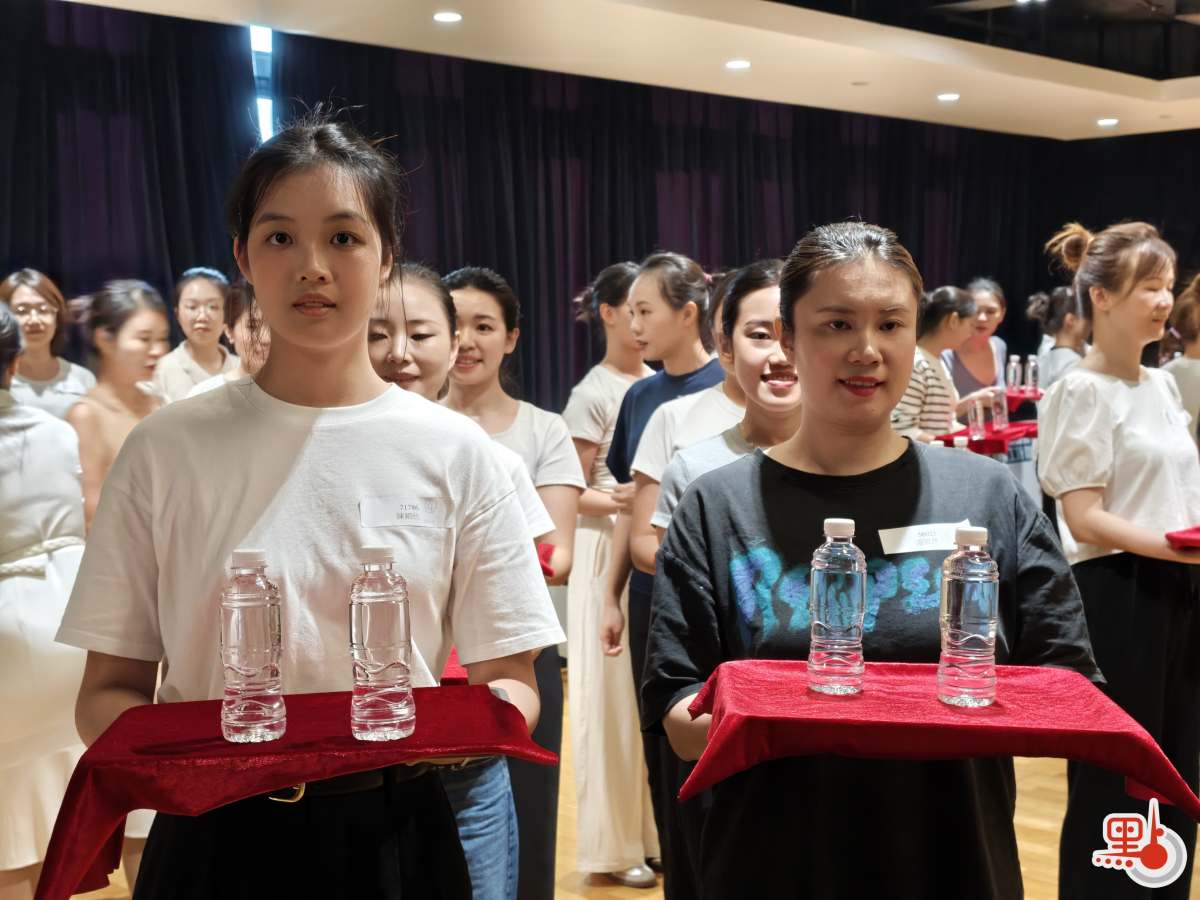 本次禮儀助理訓練共持續兩天半,來自廣州賽區的國家高級禮儀培訓師李靜是課程導師之一。她介紹,第一階段以理論為主,涵蓋頒獎典禮禮儀的多個核心方面,包括基本禮節、現場協調和安全注意事項等;第二階段則轉入實操訓練,聚焦行姿、站姿、托盤持握及引領技巧等;第三階段,義工們將進行全流程演練,對頒獎過程進行模擬。