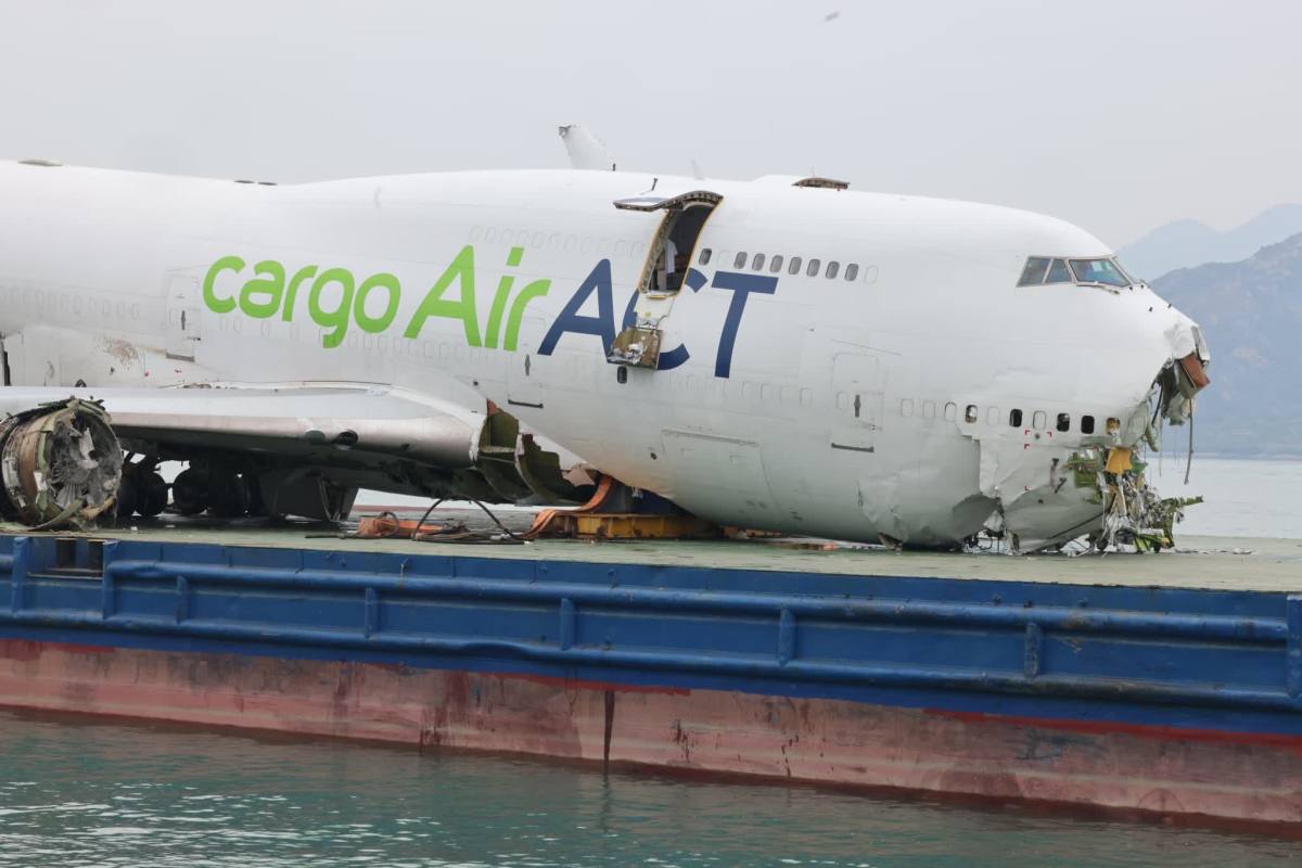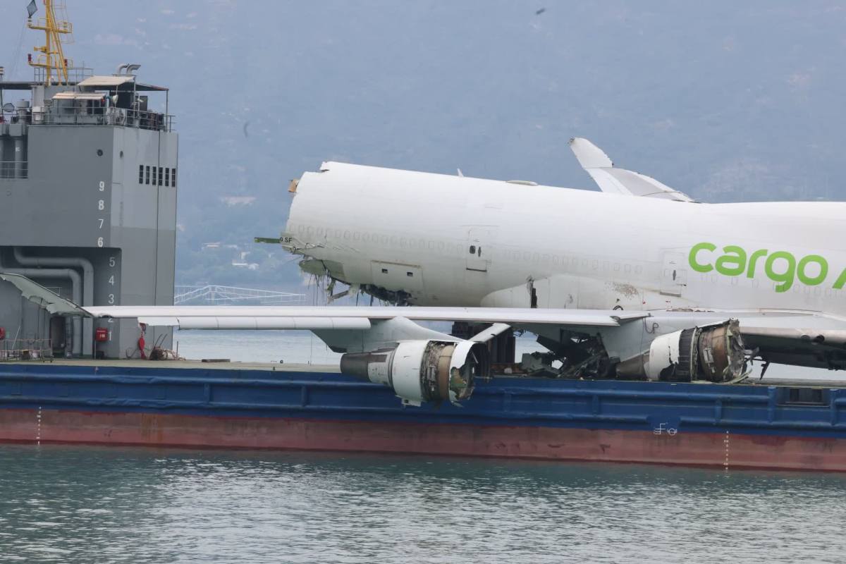 【點新聞報道】本月20日一架由阿聯酋抵港的波音747-400貨機,在香港國際機場北跑道降落滑行時,突然急轉向偏離跑道撞向巡邏車並一起墮海,巡邏車上兩名機場保安人員死亡。受香港機場管理局委託的廣州打撈局專業團隊,連日來陸續撈起及移離失事貨機殘骸,繼上周五(24日)吊起失事貨機機尾及尋回貨機上兩個「黑盒」、昨日(26日)再吊起前半部機身及機頭,今日(27日)專業團隊繼續打撈貨機其餘殘骸部分,而已被撈起的貨機殘骸則被運送到欣澳倒扣灣作進一步處理。截至目前,打撈團隊完成工作離開,機場北跑道預計今晚11時重開。