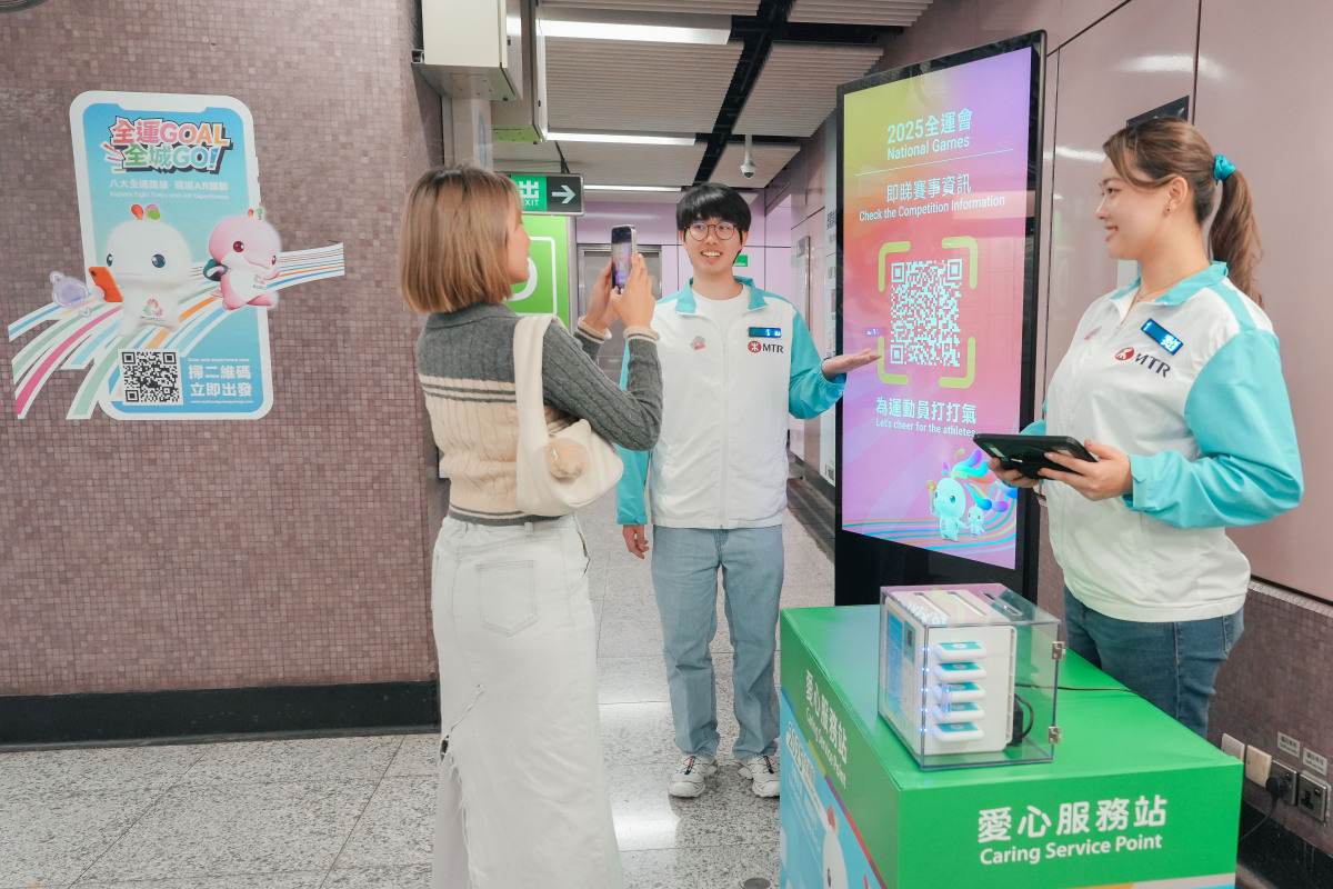 港鐵指,為配合賽事日程,由本周五(31日)起,會率先於15個鄰近賽事場地(包括中環、銅鑼灣、紅磡、啟德及上水站等)和位於口岸的車站(即羅湖、落馬洲及高鐵香港西九龍站),安排超過50名「服務大使」,解答乘客查詢及提供出行建議等。這些車站亦會增加標示及前往場地的相關資訊。港鐵虛擬服務大使Tracy會在特定車站向乘客提供全運會資訊。
