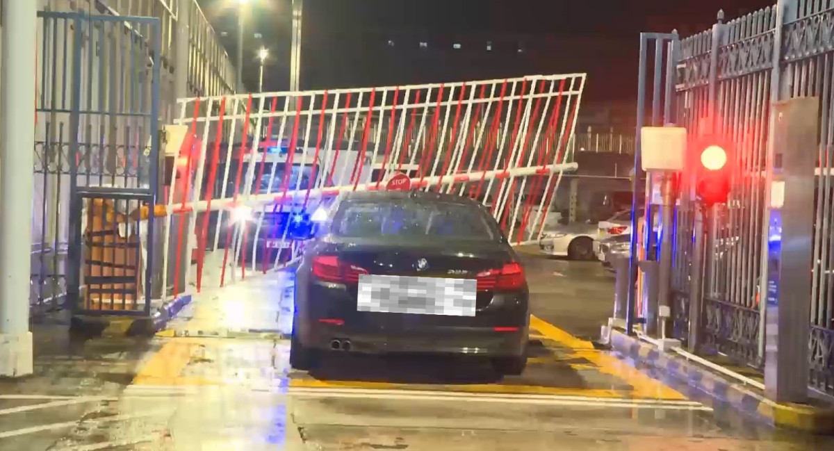 【點新聞報道】屯門警署大閘今(28日)晨被一輛寶馬私家車撞毀。事發清晨4時許,涉事私家車駛到警署面向震寰路的車輛出入口,再撞向大閘。約4米長的起落閘被撞至損毁升起,男司機則棄車徒步往友愛邨方向逃去。警方追查期間,一男子在友愛邨保安處致電報警,自稱懷疑被人跟蹤。新界北衝鋒隊人員到場經調查期間,報案人承認剛駕車撞到屯門警署閘口,警方於是將其拘捕。