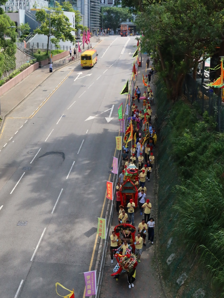 這還沒完!隊伍還要趕場接上地母元君、觀音等神仙,最後浩浩蕩蕩巡遊返回德田邨。街坊們早早守候路旁,等着迎接這場一年一度的神仙「出行」。