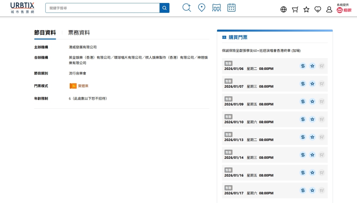 下午3時,點新聞記者在城市售票網看到,截至目前所有場次門票已全部售罄。主辦機構會實施「延後取票」方案,購票人士須於每一場演出的演出日期前14天內至演出當天,攜帶用以購票的信用卡/扣賬卡到城市售票網售票處或自助售票機提取已購門票,不設郵遞及速遞服務。
