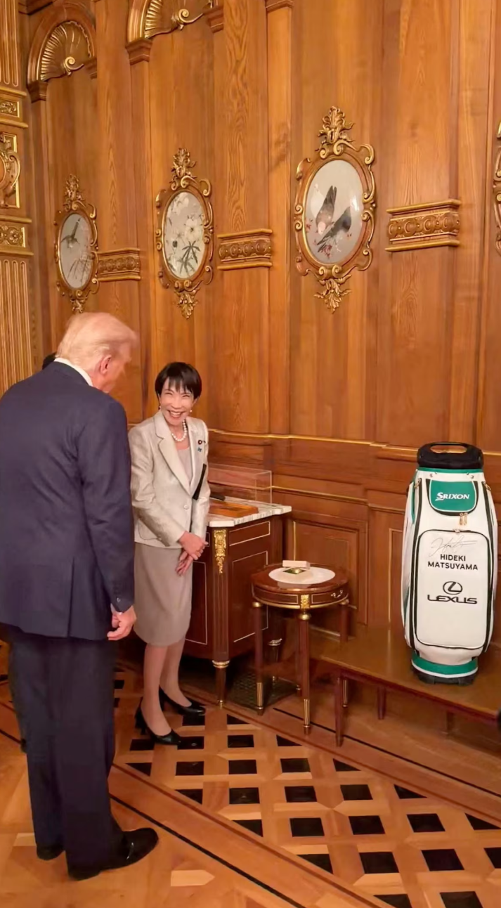 高市早苗將日本前首相安倍晉三用過的高爾夫球桿贈予特朗普,一同贈送的還有日本高爾夫球選手松山英樹的簽名球包。