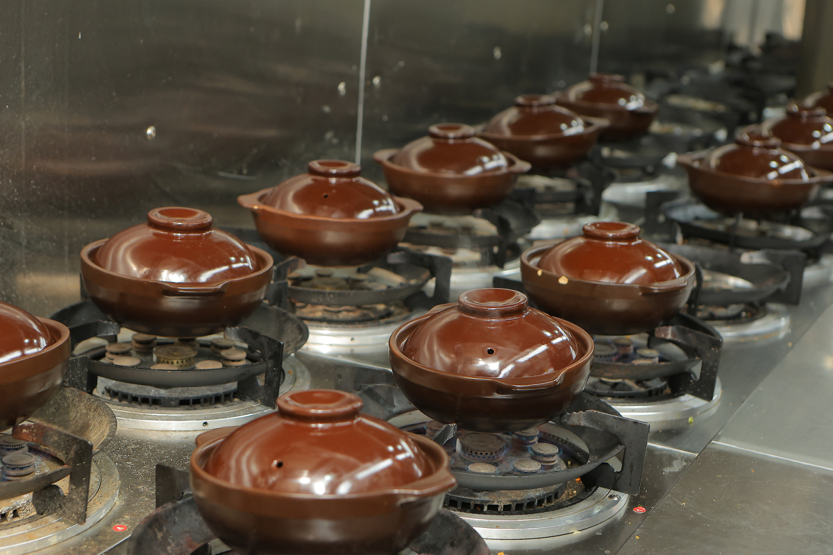 除了煲仔飯,「美麗小廚」的雞宴系列亦是餐廳鎮店靈魂。黎兆鋒最具代表作「大紅袍脆皮雞」,以名茶入饌,皮脆金亮、肉嫩多汁,淡淡茶香貫穿整體;而「黃金薑蓉雞」則以三重薑香取勝——以自家提煉的薑油為基底,巧妙融匯沙薑的辛香、南薑的馥郁、肉薑的醇厚,香氣濃郁而不嗆。
