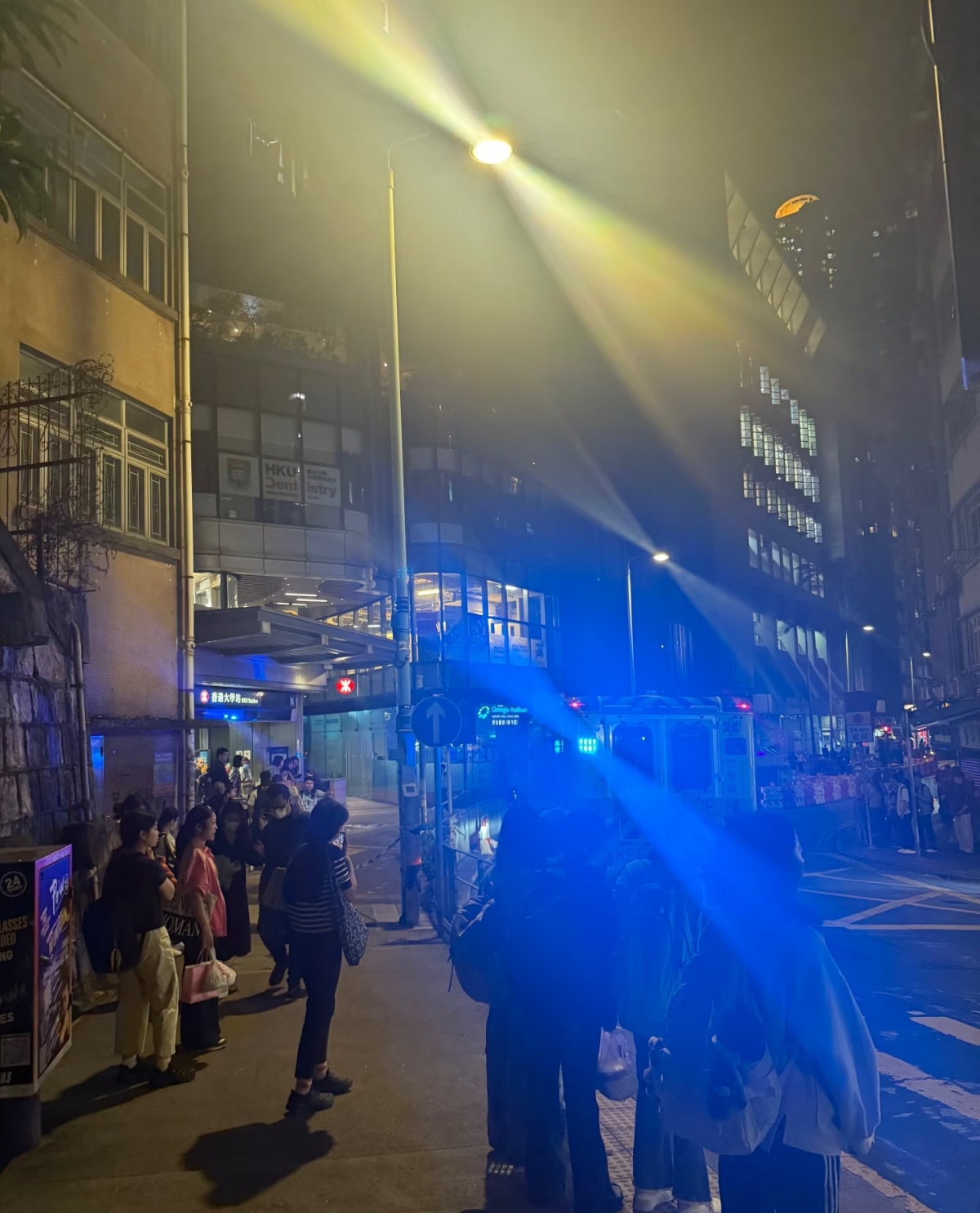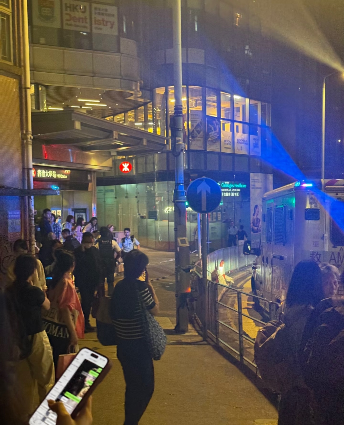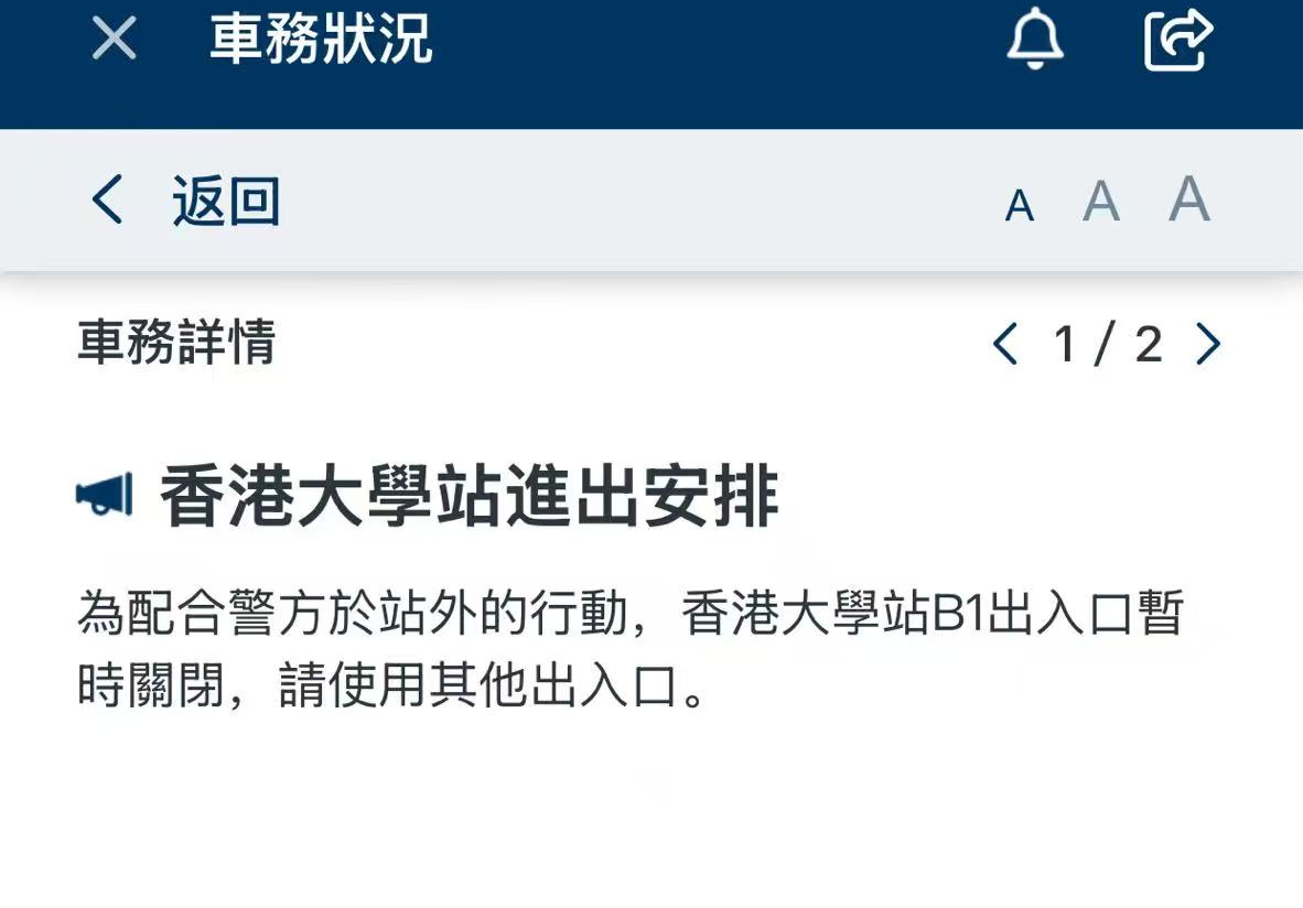 港鐵表示,為配合警方於站外的行動,香港大學站B1出入口暫時關閉。