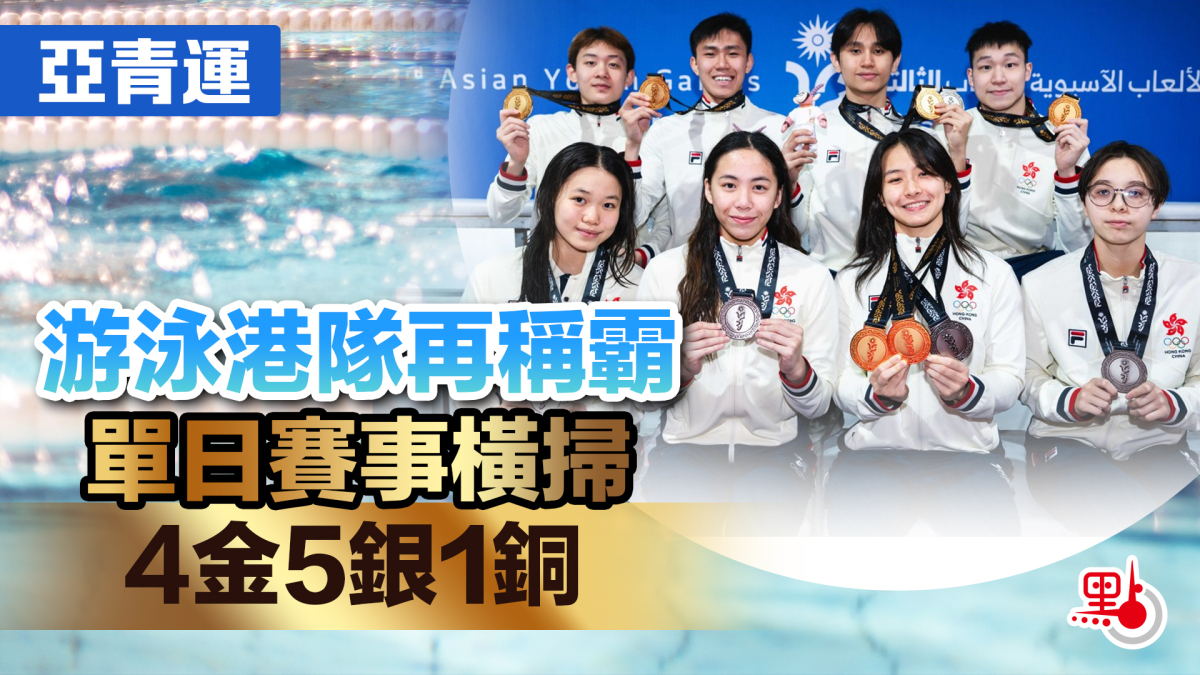 【點新聞報道】港隊於巴林2025亞洲青年運動會(亞青運)捷報頻傳,泳隊在昨日(28日)晚上舉行的多項決賽再度橫掃獎牌,合共贏得4金5銀1銅。中國香港代表團至今收穫7金6銀8銅,共21面獎牌,超越上屆2金5銀13銅的成績,於獎牌榜位列第7。