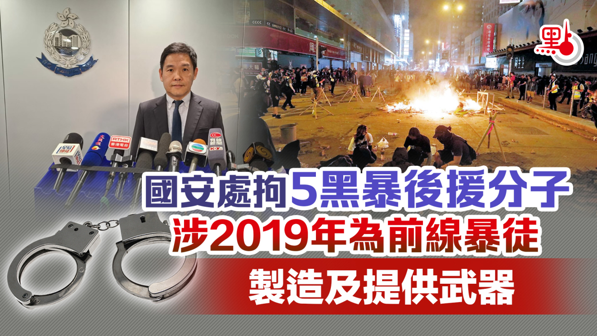案情指被捕人涉嫌於2019年底黑暴期間為參與多區暴動的前線暴徒製造及提供武器。翻查資料,2019年黑暴期間,暴徒經常使用各種自製武器攻擊警察,包括汽油彈、鋁熱彈、炸彈、強力彈叉、彈珠發射器等,對警察構成嚴重生命威脅。當年網上亦曾流傳各種武器的製作方法說明圖,以及一些教學短片講述如何組裝及使用相關武器。