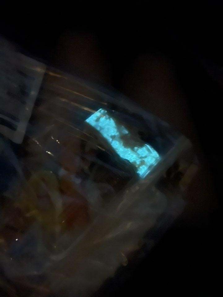 綜合泰媒報道,泰國網民「Mild Burusskorn」上周日在Facebook專頁「我們是消費者」中,分享了數張照片,顯示在黑暗中,一盒壽司中竟有幾隻發出藍光。事主表示,由於外觀異樣,因此不敢食用此發光的壽司,但對藍光成因感到好奇。不少網民也表示擔憂,建議事主不要食用。