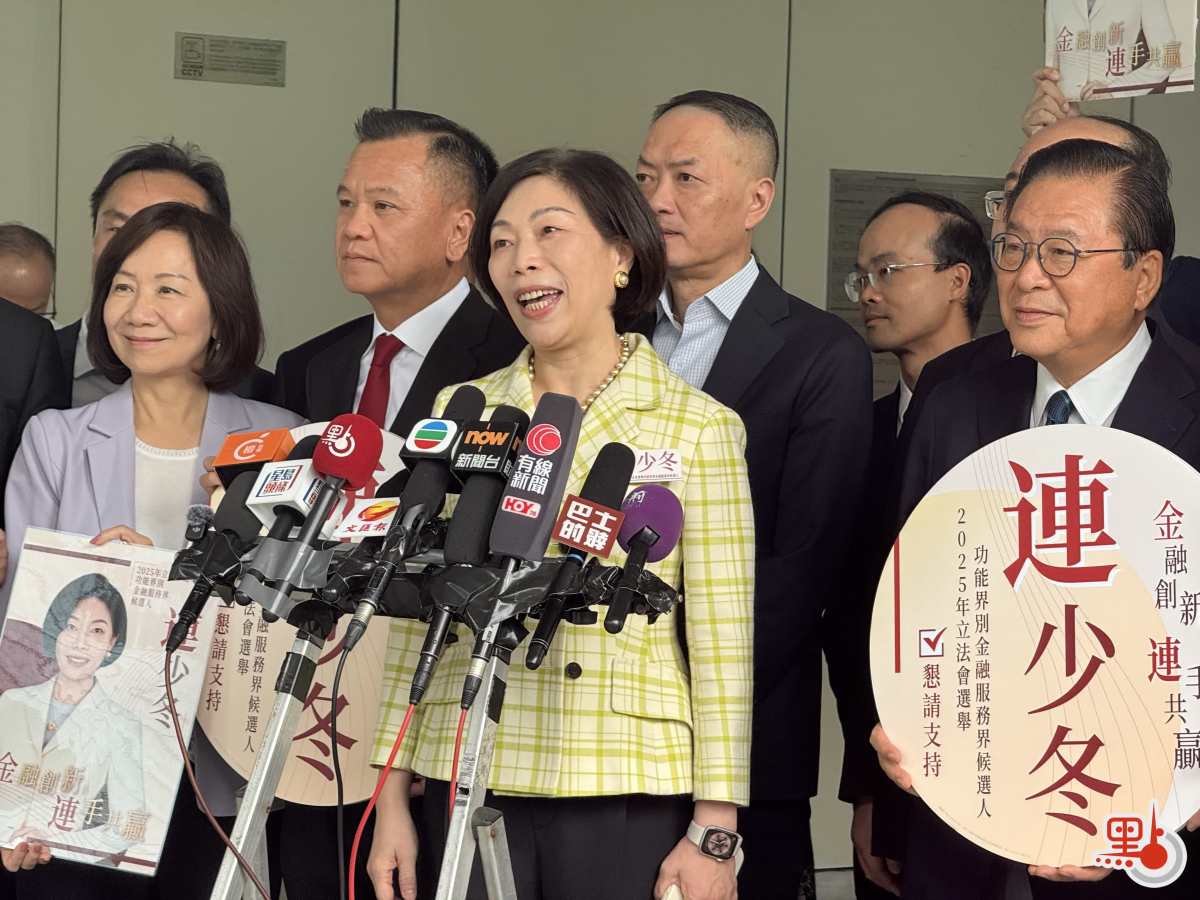 香港中資基金業協會會長連少冬於政府總部見記者,宣布報名競逐金融服務界別議席。連少冬表示,如能當選將會做許多工作,包括改善中小券商的生態環境,冀降低經營成本;推動政府搭建金融設施,幫助中小券商轉型;通過自己熟悉的黃金ETF領域幫助推動香港成為國際黃金中心,目標是令香港國際金融市場這個「金字招牌」更光更亮。連少冬對香港資本市場有信心,指今年以來在國家支持下,許多內地公司來港上市,推動港股成交回暖、新股集資額重返世界前列。她希望利用長期積累的經驗和實戰能力,代表業界推動香港金融市場融入國家發展大局。