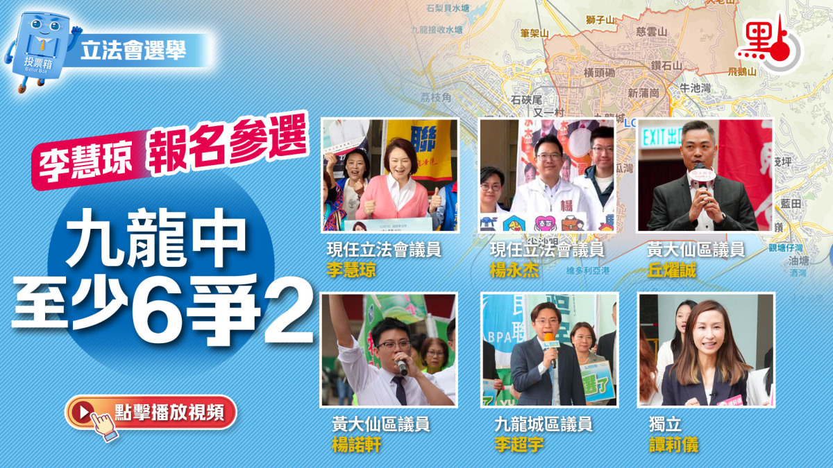 現任九龍中立法會議員李慧琼在九龍城區及黃大仙區多位區議員、地區領袖陪同下報名競逐連任。李慧琼憶述從政20多年來一直保持着「國家好、香港好、市民好、大家好、社區更好」的初心,推動社會合力、政策落地。她說,在香港由治及興的新階段下,機遇大於挑戰,要善用「一國兩制」優勢,融入國家發展大局,加快河套區及北部都會區建設,增加土地供應,推動產業多元化,提升市民收入;在基層方面,要建構關愛社區,「讓市民有更好生活、長者有更好環境」。