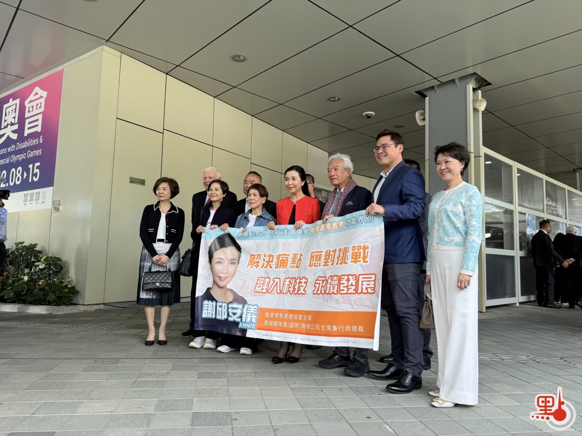 香港零售管理協會主席謝邱安儀下午於政府總部見記者,正式宣布將報名角逐批發及零售界功能界別議席。謝邱安儀表示,她擔任香港零售管理協會主席多年,長期為業界發聲,就租金、人手短缺等痛點持續向特區政府及外界反映訴求,認為現在需要將業界聲音進一步提升至議會層面,讓政府能直接聽到來自業界的心聲。謝邱安儀提到,她在加入零售業前擁有多年資訊科技界經驗,主修電腦工程。她表示,結合在科技領域的專業背景與豐富的零售管理經驗,堅信自己能帶領香港零售業邁向新高峰,實現科技與零售的深度融合。