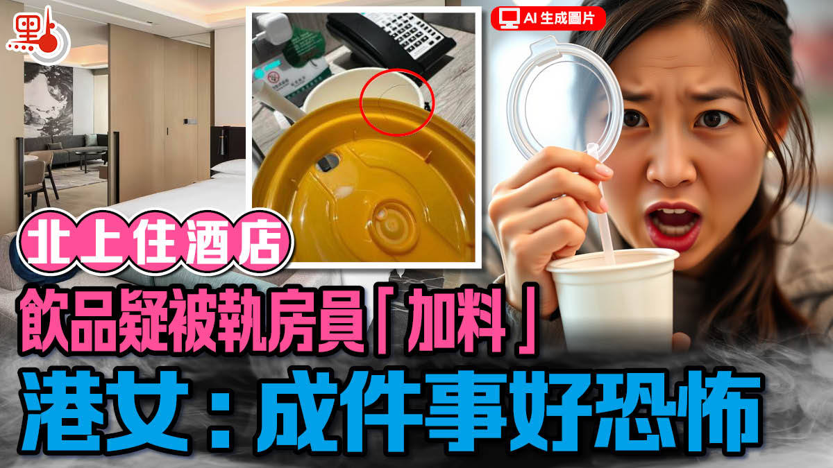 有港女近日在社交平台threads分享一次北上入住酒店的經歷,指與同事「出trip」北上住酒店,每個人都係獨立一間房。 本月17日當日下午,她買了一杯飲品回房,飲了幾啖、沒有蓋上杯蓋,便出了門,「今日食完lunch跟手買咗杯廢水諗住上房飲,上到房發現攞錯細飲管,索性撕開嚟飲,最後因為太飽飲咗幾啖就冇飲,之後就出咗門口,出門口前我冇冚返個杯蓋,就咁擺咗喺電話前」。