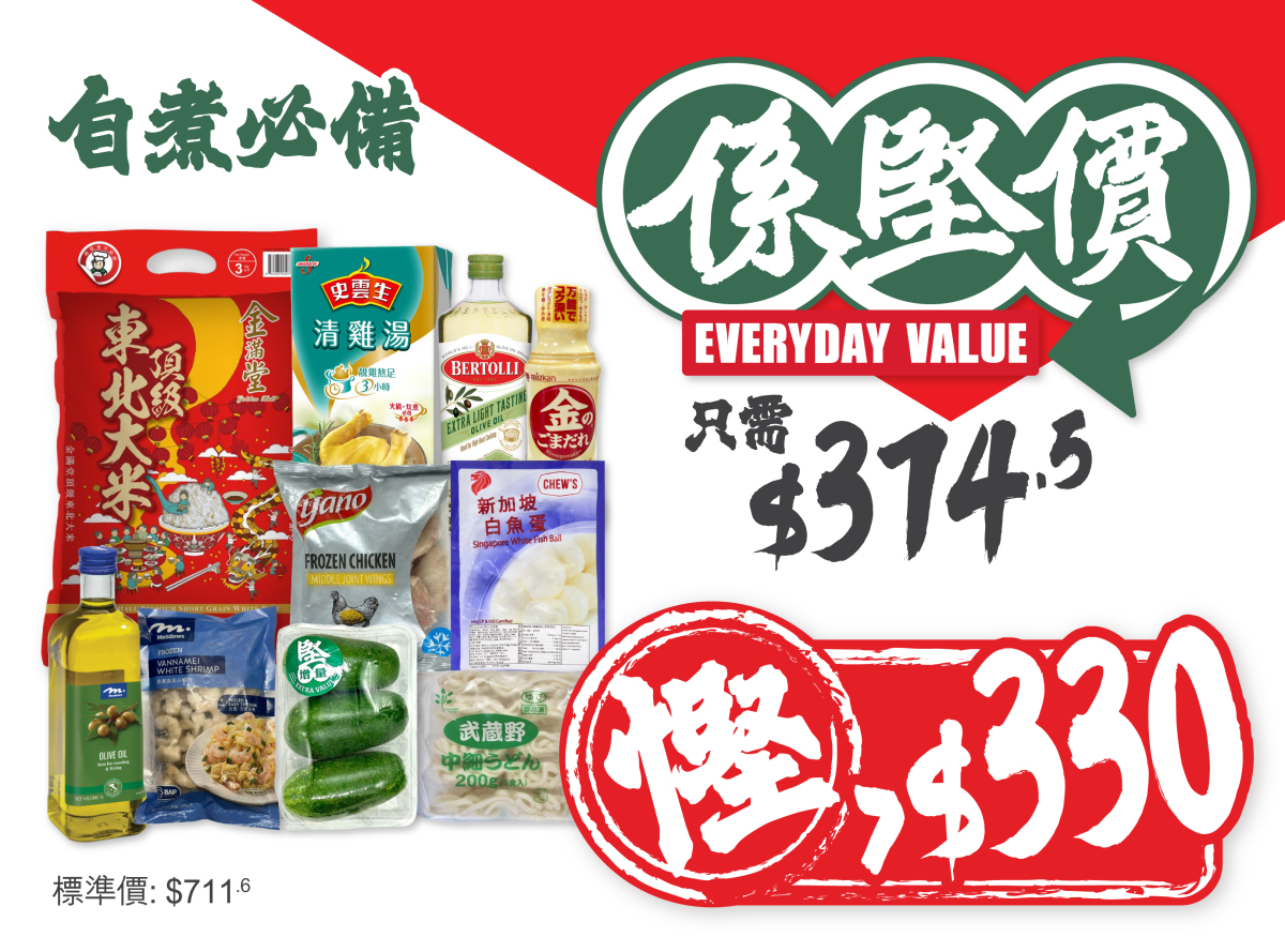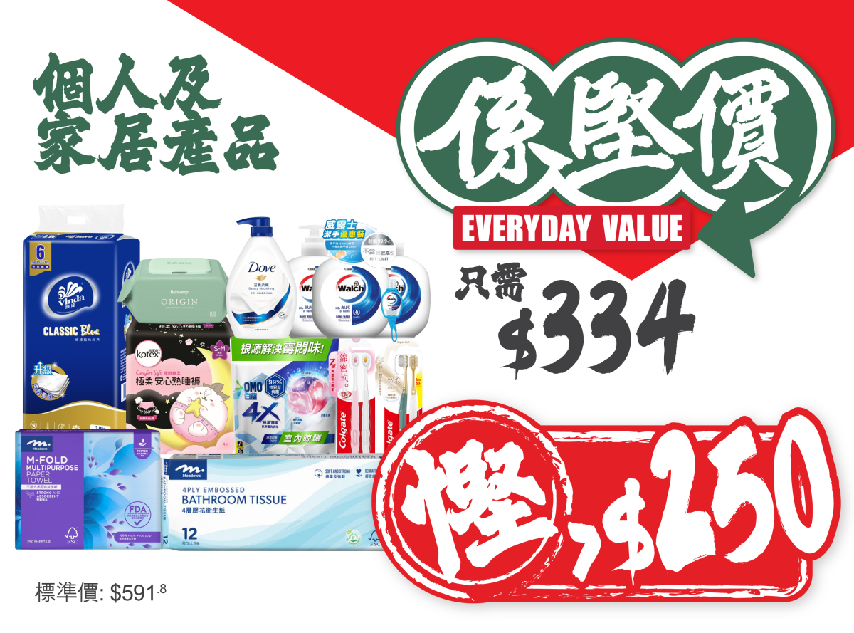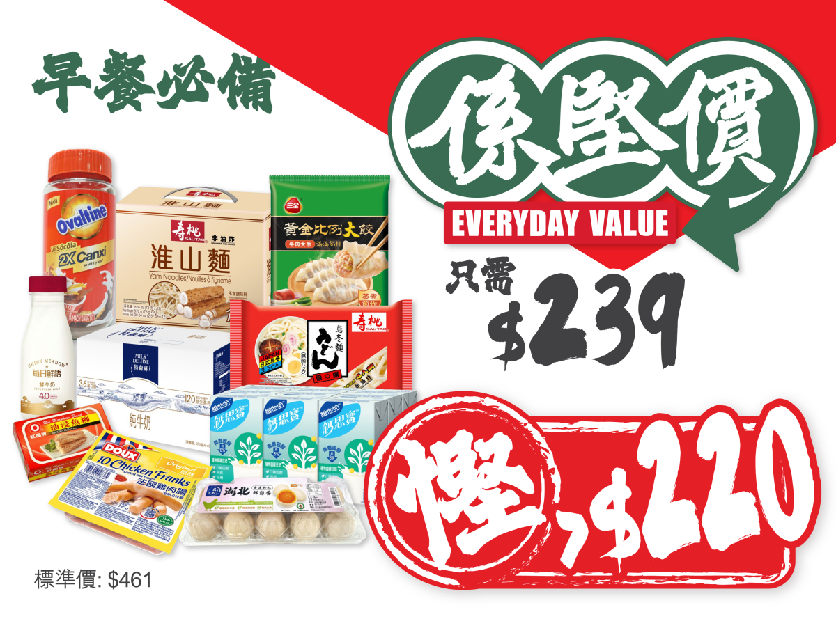 想慳得更多?「係堅價」由一日三餐入手:早餐有穀物、奶類與沖劑,午餐晚餐有米、麵、醬料及罐頭;加上零食與飲品作日常補給,由入廚到加班宵夜也照顧得到。「係堅價」同時延伸至個人護理與家居清潔,由沐浴、女性護理、洗衣到紙巾及寵物產品,一家大小需要都覆蓋。讓每個家庭都能輕鬆實踐慳錢大法。隨時幫你精明節流,買得多,慳得更多!